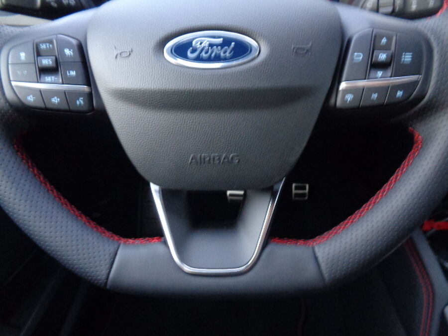Akustischer Fußgängerschutz (Außensound, AVAS), Audiobedienung am Lenkrad, 9 Lautsprecher, Subwoofer, Ford SYNC 3 mit Navigation, Außenspiegel Wagenfarbe, Body-Styling-Paket, Seitenschweller Wagenfarbe, Kühlergrill schwarz, Stoßfänger Sport-Ausführung, Bremssättel Rot lackiert, Brillenfach in Dachhimmel / Dachkonsole integriert, Dachhimmel Stoff, dunkel, Doppelendrohr Auspuffanlage, Einstiegschienen mit Modell-Schriftzug, Ergonomiesitze vorn, Fahrassistenz-System: Pre-Collision-System, Fahrassistenz-System: Auffahrwarnsystem, FordPass Connect inkl. eCall, Frontscheibe teilweise heizbar, Fußmatten ST-Design, Gepäckraumabdeckung / Rollo, Gepäckraumbeleuchtung, Induktionsladeschale für mobile Endgeräte, Intelligent Protection System (IPS), 3-Punkt-Sicherheitsgurt hinten, Warnanlage für Sicherheitsgurte vorn, Warnanlage für Sicherheitsgurte hinten, Gurtstraffer, KeyFree-System, Power KeyFree-Startfunktion, Kindersicherung elektrisch, Kombiinstrument Digitalanzeige 12,3 Zoll, Kopfstützen vorn 4-fach verstellbar, Ladekabel für öffentliche Ladesäulen, Lenksäule (Lenkrad) höhen-/längsverstellbar, Leuchtweitenregelung, Mittelarmlehne hinten, Mittelkonsole mit Armlehne, Mittelarmlehne vorn mit Staufach und 12V-Anschluß, Getränkehalter vorn, Modellpflege, Off-Road Multi-Meter-Anzeigen inkl. Neigungswinkel, Kompass, Parkbremse elektrisch mit Auto-Hold-Funktion, Fahrassistenz-System: Berganfahr-Assistent (Hill-Holder), Pedale Aluminium, Radstand 2710 mm, Reifen-Reparaturkit, Schadstoffarm nach Abgasnorm Euro 6e, Schalt-/Wählhebelgriff Aluminium, Scheibenrahmen schwarz, Scheinwerfer mit Ausschaltverzögerung, Seitenscheiben vorn Akustikglas, Seitenscheiben vorn Verbundglas, Sonnenblende links mit Spiegel (beleuchtet), Sonnenblende rechts mit Spiegel (beleuchtet), Spezialausführung 2, Türkantenschutz / Schutzprofil vorn und hinten (Door Edge Protector), Anhänger-Stabilisierungs-Programm (TSA), Ladekabel mit Schukostecker, Winter-Paket, Frontscheibe heizbarFahrzeugbeschreibung