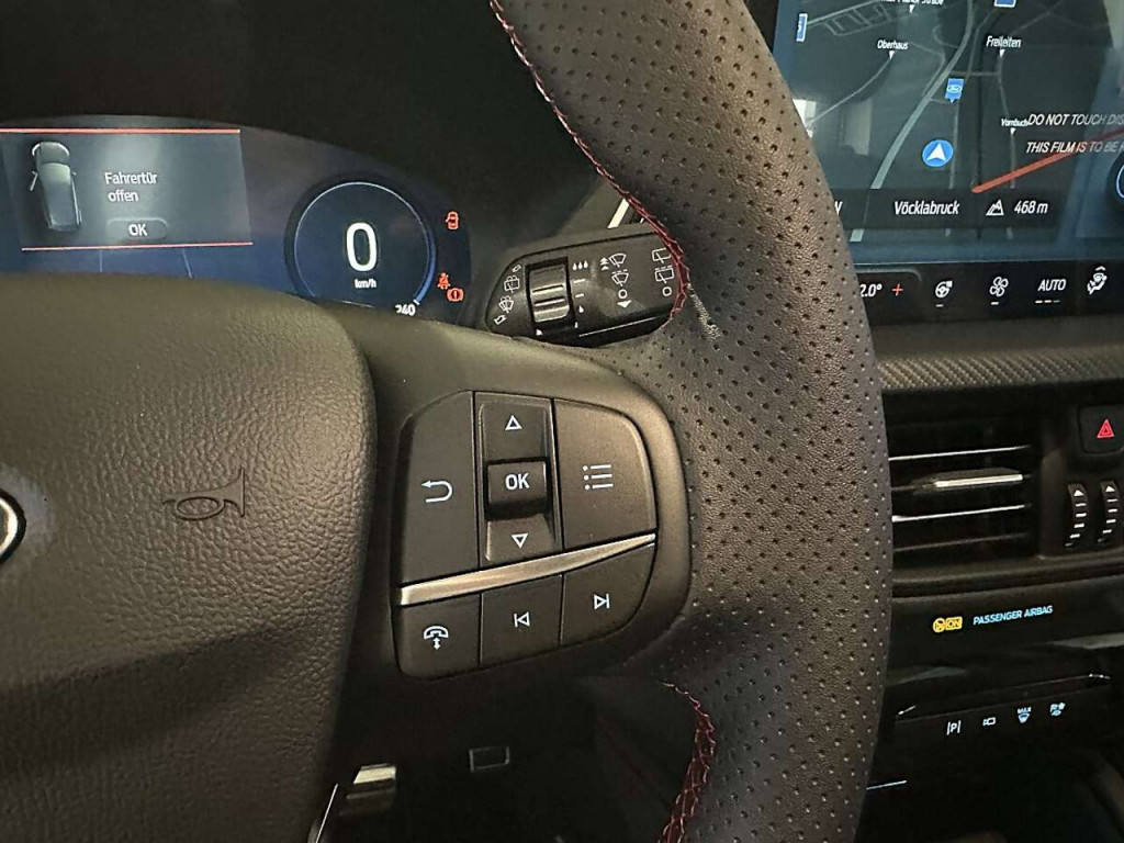 *Lenkrad, ST-Line-Design, unten abgeflacht und mit roten Ziernähten, Sensico in Leder-Optik