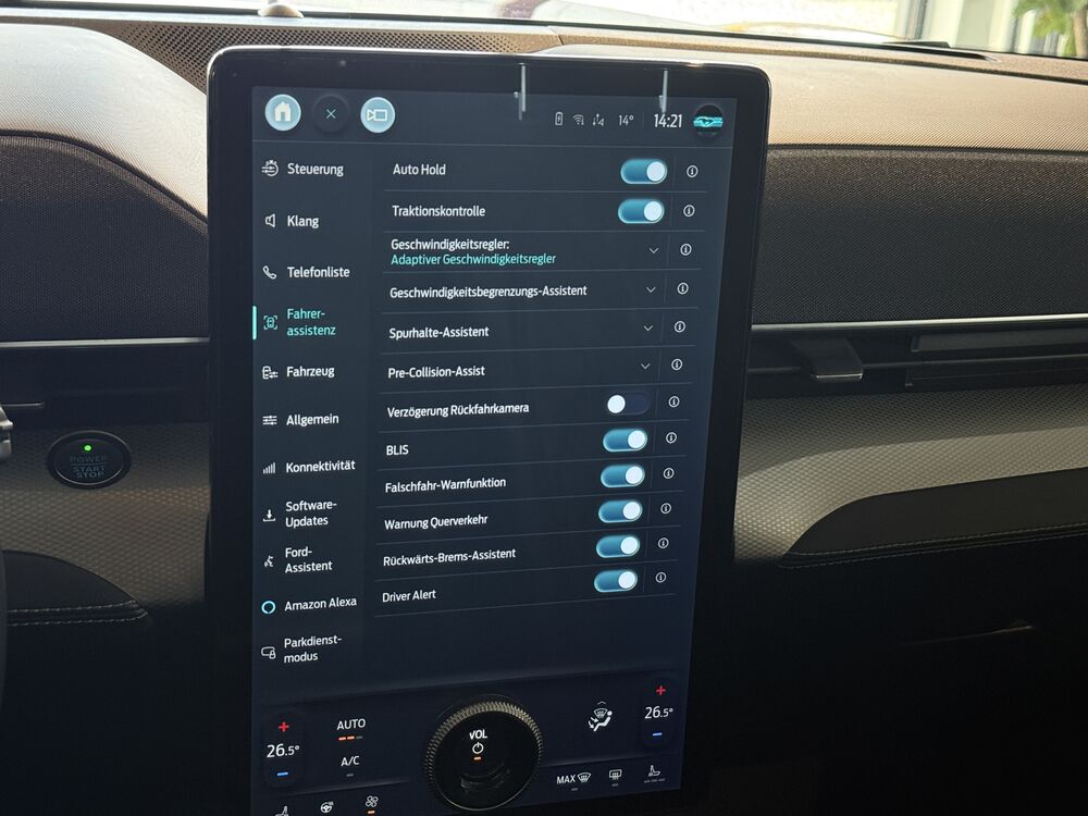 Ablagetasche an Vordersitzlehnen, Akustischer Fußgängerschutz (Außensound, AVAS), Anhänger-Stabilisierungs-Programm (TSA), Anhängerkupplung Vorbereitung, 6 Lautsprecher, Farbdisplay in Mittelkonsole (15,5 Zoll), Außenspiegel Wagenfarbe, Bodenleuchte im Außenspiegel, Dachantenne, Dachhimmel Stoff, Elektr. Bremskraftverteilung (EBD), Fahrassistenz-System: Intelligent Drive Assist, teilautomatisierte Fahrassistenz, Fahrassistenz-System: Stauassistent inkl. Stop&Go-Funktion, Fahrassistenz-System: Fahrspur-Pilot, FordPass Connect inkl. eCall, Fußmatten Velours, Heckscheibenwischer, HV-Batterie 99 kWh brutto / 91 netto, Induktionsladeschale für mobile Endgeräte, Innenausstattung: Carbon-Dekor, Innenraumfilter: Staub- und Pollenfilter, Intelligent Protection System (IPS), 3-Punkt-Sicherheitsgurt hinten, Warnanlage für Sicherheitsgurte vorn, Gurtstraffer, Kindersicherung elektrisch, Kombiinstrument Digitalanzeige 10,2 Zoll, Komfortsitze vorn, Kopfstützen hinten mechan. verstellbar (3 Stück), Kopfstützen vorn 4-fach verstellbar, Ladekabel mit Typ 2-Stecker (Mode 3), Leseleuchten im Fond, Mittelarmlehne hinten, Parkbremse elektrisch mit Auto-Hold-Funktion, Radstand 2984 mm, Reifen-Reparaturkit, Sonnenblende links mit Spiegel (beleuchtet), Sonnenblende rechts mit Spiegel (beleuchtet), Steckdose (12V-Anschluß) im Koffer-/Laderaum, Technologie-Paket 1, 9 Lautsprecher, Subwoofer, Fahrassistenz-System: aktiver Park-Assistent Plus, Ein- und Auspark-Funktion und teilautomatisierter Fahrzeugführung, Fahrassistenz-System: VerkehrsschildassistentFahrzeugbeschreibung