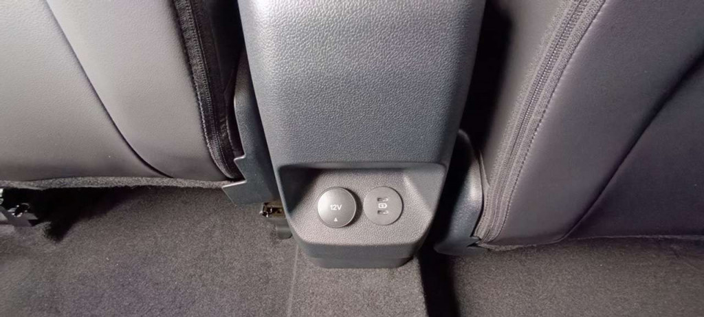 *12-Volt-Anschluss hinter der Mittelkonsole vorn für die 2. Sitzreihe