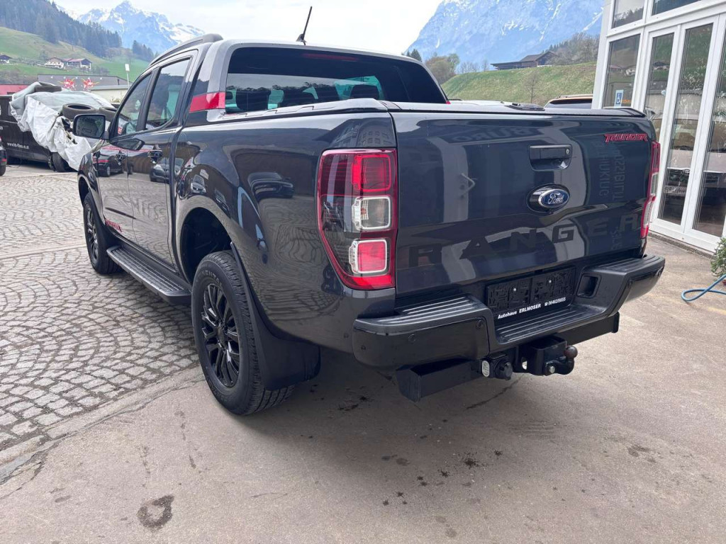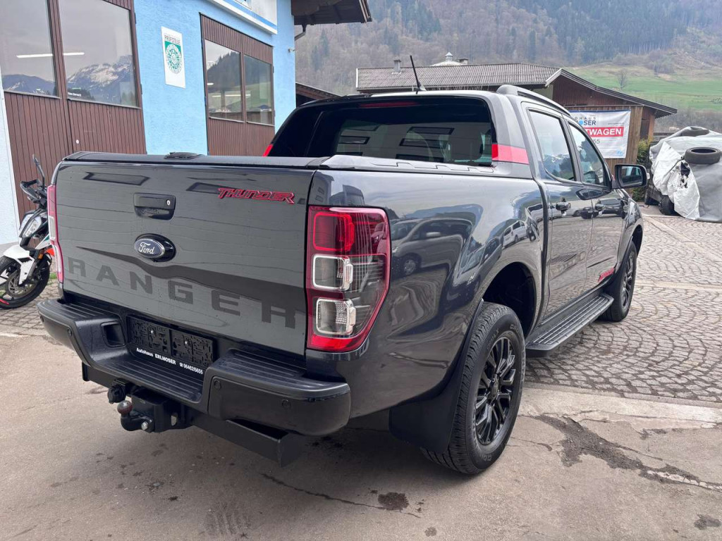 Zum Verkauf steht ein sehr gepflegter Ford Ranger Thunder aus 04/2021 in hervorragendem Gesamtzustand.Der robuste Pickup überzeugt durch seinen kraftvollen 2.0 BiTurbo Diesel mit 213 PS, den zuverlässigen Allradantrieb sowie die komfortable 10-Gang-Automatik – ideal für Arbeit, Freizeit und Anhängerbetrieb.
