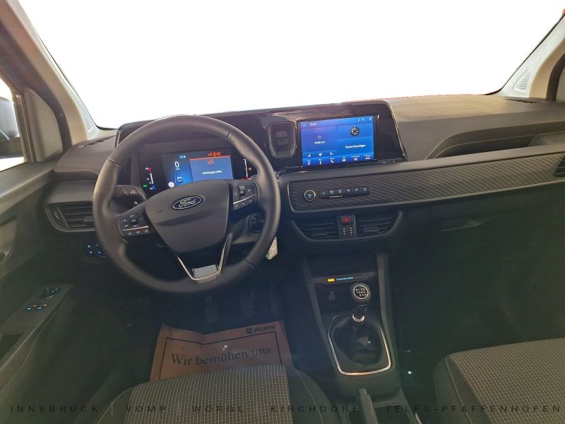 Anhängerkupplung, Fahrer-Assistenz-Paket 2, Tagfahrlicht LED, Verglasung hinten abgedunkelt (Privacy Glass), Winter-Paket 2, Ausstellfenster Schiebetür links, Heckscheibenwischer, Schiebetür rechts, Stahlfelgen 6x15, Audiosystem: Radio, Außenspiegel elektr. verstell- und heizbar, Bord-/Verbrauchscomputer, Fensterheber elektrisch vorn, Geschwindigkeits-Regelanlage (Tempomat), Intelligenter Geschwindigkeits-Begrenzer, Klimaanlage, Parkpilotsystem hinten, Radioempfang digital (DAB), Sprachsteuerung und Bluetooth-Schnittstelle, Start/Stop-Anlage, USB-Anschluss, Zentralverriegelung mit Fernbedienung, Elektron. Stabilitäts-Programm (ESP), Fahrassistenz-System: Fernlichtassistent (Scheinwerfer mit Abblendautomatik), Fahrassistenz-System: Sicherheitssystem SYNC mit automatischem Notruf, Fahrassistenz-System: Spurfolgeassistent (Lane Following Assist, LFA), Fahrassistenz-System: Spurhalteassistent, Fahrassistenz-System: Verkehrsschildassistent, FordPass Connect inkl. eCall, Nebelscheinwerfer, RFahrzeugbeschreibung