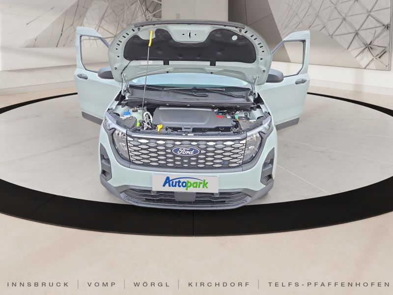 Fahrer-Assistenz-Paket 3, Gummimatten in Fahrgast-/Laderaum, Laderaumleuchte LED, Reserverad in Fahrbereifung, Schiebetüren beidseitig, Winter-Paket 2, LM-Felgen, Schiebetür rechts, Airbag Beifahrerseite abschaltbar, Audiobedienung am Lenkrad, Außenspiegel elektr. verstell- und heizbar, Bord-/Verbrauchscomputer, Klimaautomatik, Zentralverriegelung mit Fernbedienung, Airbag Fahrer-/Beifahrerseite, Elektron. Stabilitäts-Programm (ESP), Fahrassistenz-System: Notbrems-Assistent, Fahrassistenz-System: Sicherheitssystem SYNC mit automatischem Notruf, FordPass Connect inkl. eCall, Kopf-Schulter-Airbag vorn, Power KeyFree-Startfunktion, Reifendruck-Kontrollsystem, Seitenairbag vorn, Tagfahrlicht LED, Antriebsart: Frontantrieb, Bremskraftverstärker elektrisch, Elektromotor 100 kW, Fahrzeugschlüssel (2) beide klappbar, Farbdisplay (8 Zoll), Frontstaufach / Frunk (Kofferraum, vorn), Fußmatten vorn Gummi, Getriebe für Elektrofahrzeug, Heckflügeltüren ohne Verglasung, Heckleuchten LED, HV-BatterieFahrzeugbeschreibung