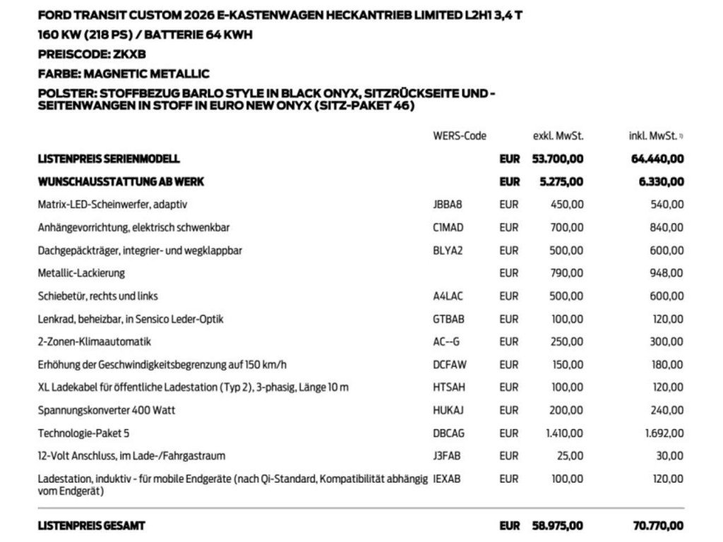 - Listenpreis gesamt € 70.800, - inkl. / € 59.000, - exkl.