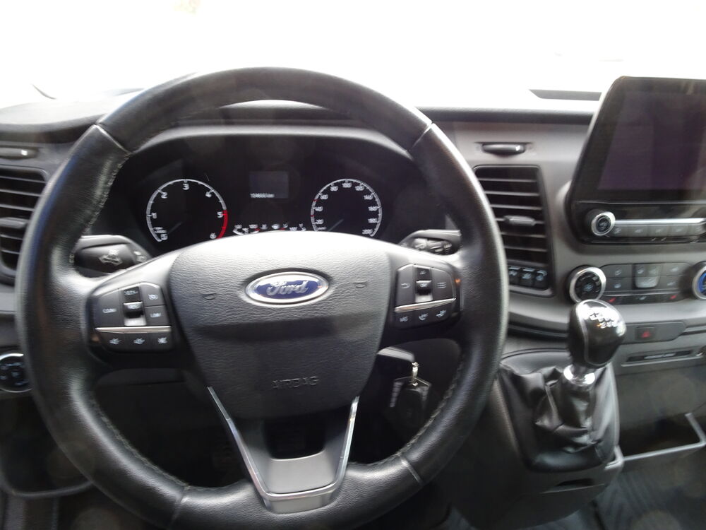 Ablage im Dachhimmel Fahrerhaus, Anhänger-Stabilisierungs-Programm (TSA), Bodenbelag: Vinyl im Lade-/Fahrgastraum, Einstiegsleuchten, Elektr. Bremskraftverteilung (EBD), Heizung mit Umluftschaltung, Karosserie/Aufbau: Kasten Hochraum Standard, Karosserievariante: Mittelhohes Dach, Lenksäule (Lenkrad) höhen-/längsverstellbar, My Key (2. Fahrzeugschlüssel programmierbar), Parkpilotsystem vorn und hinten, Radstand 3750 mm, Reifen-Reparaturkit, Schadstoffarm nach Abgasnorm Euro 6d-TEMP, Schalt-/Wählhebelgriff Leder, Scheibenwischer mit Intervallschaltung, regulierbar, Schmutzfänger hinten, Seitenschutzleisten, Sitz-Paket 13: Fahrersitz (4-fach verstellbar) - Beifahrerdoppelsitz, Stoff, Sitze im Fahrerhaus: Fahrersitz mit Lendenwirbelstütze, Armlehne Fahrersitz, Trend, Trittstufe hinten integriert, Verkleidung im Lade-/FG-Raum: hoch, Verkleidung im Lade-/FG-Raum: Vinyl, Wankneigungskontrolle (Roll Stability Control, RSC), Zweiter Schlüssel mit Fernbedienung klappbar, Audio-/Radio-Fernbedienung am Lenkrad, Radiovorbereitung, 4 Lautsprecher, Fahrassistenz-System: Notrufsystem, FordPass Connect inkl. eCall, Außenleuchten hinten oben LED, Parkpilotsystem vorn und hinten, Heckflügeltüren ohne Verglasung (Öffnungswinkel 256 Grad), Holzfussboden im Laderaum, Laderaumleuchte LED, Laderaumtrennwand Kunststoff mit Fenster, Ladungssicherungs-Paket, Parksensoren seitlich, Steckdose 12V im Lade-/FahrgastraumFahrzeugbeschreibung