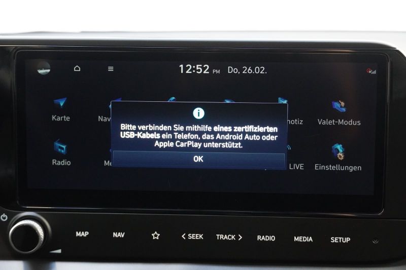 Elektr. Bremskraftverteilung, Fahrassistenz-System: aktiver Spurhalteassistent (LKAS, Lane Keep Assist System), Fahrassistenz-System: Autonome Notbremsfunktion inkl. Fahrradfahrererkennung (FCA-Cyc.), Fahrassistenz-System: Autonome Notbremsfunktion inkl. Fußgängererkennung (FCA-Ped.), Radioempfang digital (DAB+), Audio-Navigationssystem, Außenspiegel elektr. anklappbar, Außenspiegel elektr. verstell- und heizbar, beide, Bordcomputer, Digital Cockpit (Instrumentenanzeige Digital), Einparkhilfe hinten, Fahrassistenz-System: Verkehrszeichenerkennung, erweitert (Geschwindigkeits-Regel-/Begrenzeranlage), Fensterheber elektr. mit Einklemmschutz, Fensterheber elektrisch hinten, Fensterheber elektrisch vorn, Freisprecheinrichtung Bluetooth, Induktionsladeschale für Smartphone, Isofix-Aufnahmen für Kindersitz, Klimaanlage, Lenkrad (Leder), Lenkrad heizbar, Servolenkung, Sitzheizung vorn, Start/Stop-Anlage, Touchscreen-Farbdisplay (10,25 Zoll), Touchscreen-Farbdisplay (10,25 Zoll), Wireless SmarFahrzeugbeschreibung