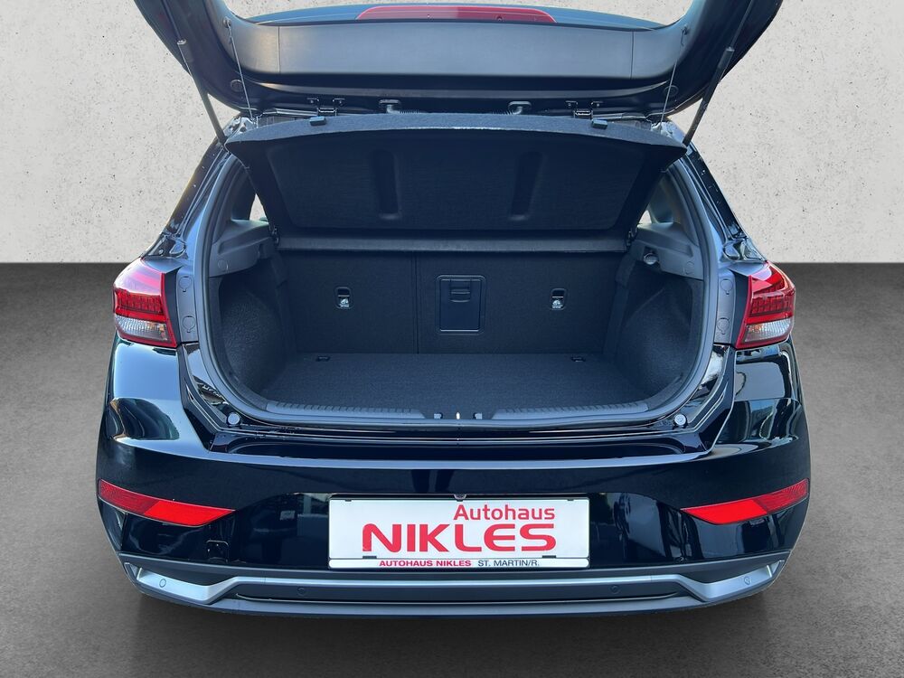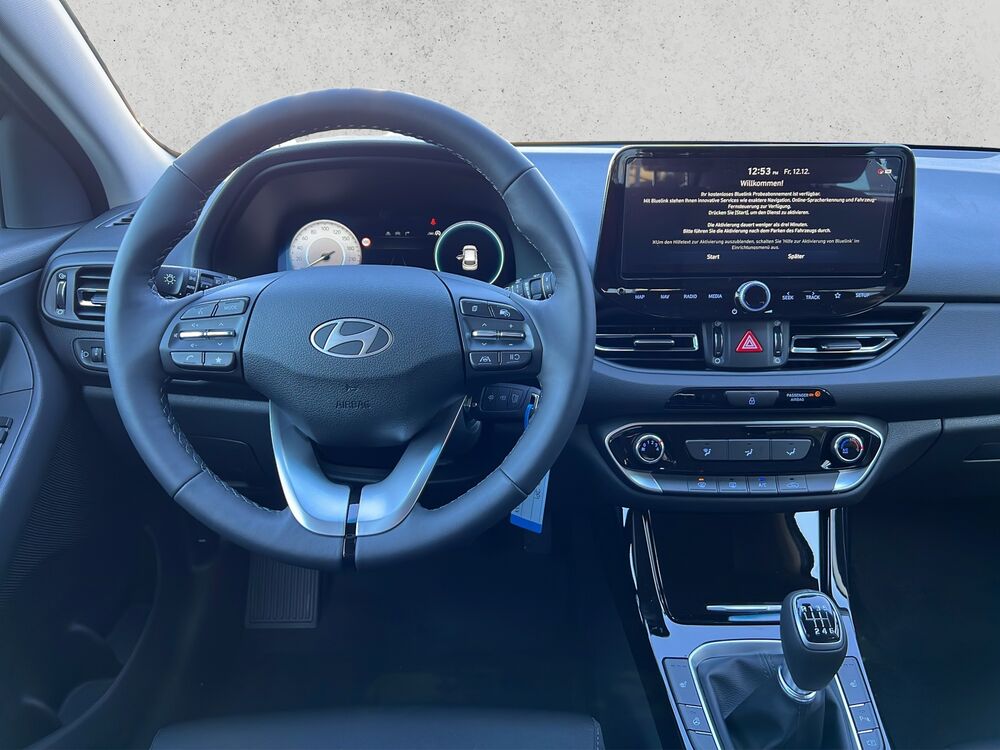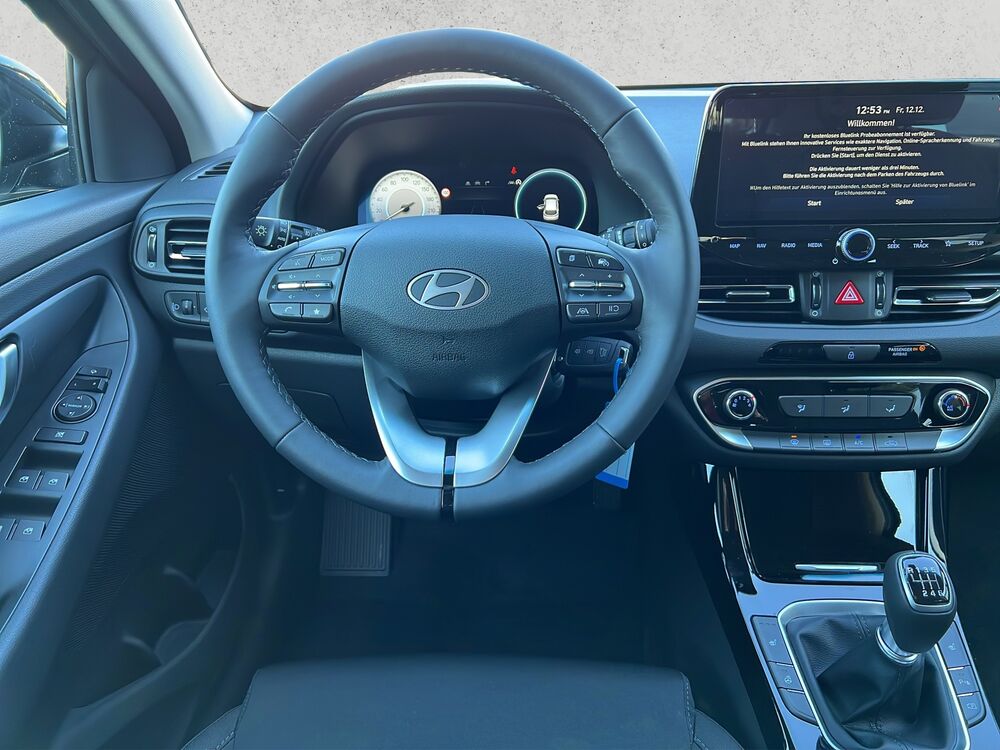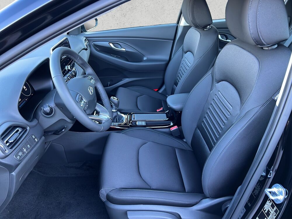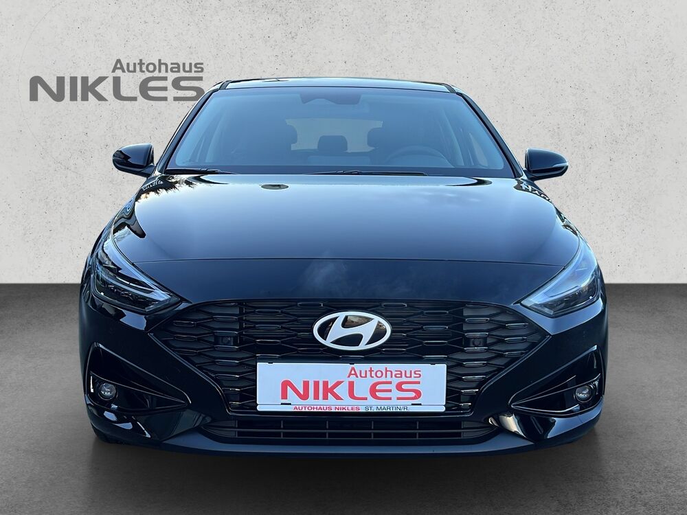 Ausstattung: elektrische Außenspiegel, Multifunktions-Leder-Lenkrad mit Heizung, elektrische Fensterheber vorne und hinten, Start/Stopp-Automatik, Klimaanlage manuell, Sitzheizung vorne, 16 Zoll Alufelgen, ISOFIX, Fahrer- und Beifahrerairbag, Seitenairbag, Kopfairbag vorne und hinten, Lichtsensor, Alarmanlage, Fernlicht- und Spurhalte- und Spurfolgeassistent, LED-Lichter, Android Auto/Apple Carplay, DAB Radio, Navi, Hyundai Bluelink MapCare+ Live Service, USB-Anschluss, Einparkhilfe vorne und hinten, Bluetooth mit Freisprecheinrichtung, Tempomat, elektrische Parkbremse, Bordcomputer, Nebelscheinwerfer, Rückfahrkamera, Notbremsassistent, statisches Kurvenlicht uvm.
