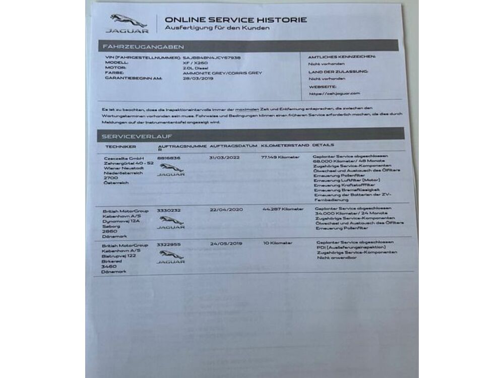 Zum Verkauf steht ein außergewöhnlich gepflegter Jaguar XF 2.0 D Pure mit 132kW (180PS) Baujahr 2019 mit sehr wenigen Kilometern der nicht nur durch seine sportlich-elegante Erscheinung besticht sondern auch durch seine beeindruckende Zuverlässigkeit und Wartungsgeschichte das Fahrzeug wurde ausschließlich bei Jaguar serviciert und befindet sich technisch wie optisch in einem bemerkenswert schönen Zustand es handelt sich um ein Automatikmodell das mit sanfter Kraftentfaltung und souveräner Laufruhe überzeugt dabei bleibt der Fahrspaß nie auf der Strecke denn dieser Jaguar verbindet sportliche Dynamik mit luxuriösem Langstreckenkomfort die Historie ist durchgehend nachvollziehbar das Auto hatte stets vernünftige und sorgsame Vorbesitzer und wurde mit Liebe behandelt es ist achtfach bereift und bereit für jede Jahreszeit das Fahrzeug sucht nun einen neuen Liebhaber der seine Wertigkeit zu schätzen weiß und auf der Suche nach einem stilvollen treuen und einzigartigen Begleiter ist dieser Jaguar XF steht sinnbildlich für britische Ingenieurskunst und moderne Eleganz und ist in dieser Kombination aus Zustand Leistung und Auftreten eine seltene GelegenheitWir Bieten: