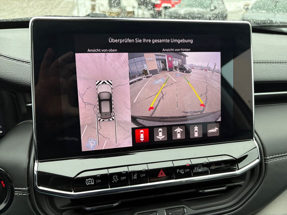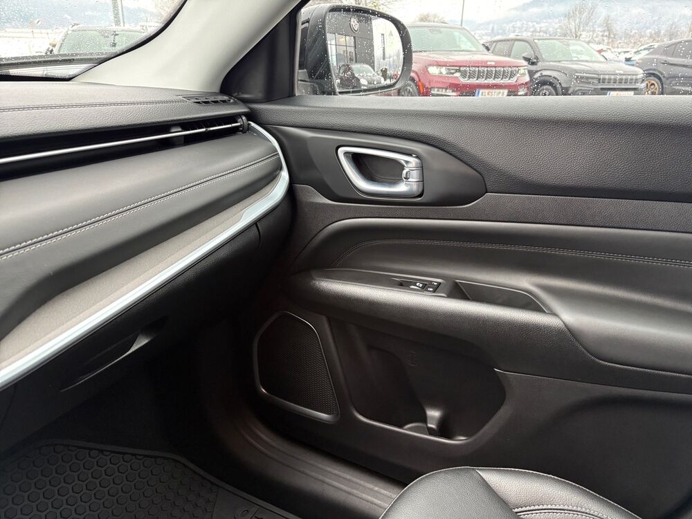 Multimedia-Schnittstelle (USB / AUX-IN / SD-Karten-Schnittstelle), Auspuffendrohr verchromt, Ausstattungs-Paket: Mopar Connect, Globale Telematic Box, Außenspiegel dunkelgrau, Dach schwarz lackiert, Dachhimmel dunkel, Fahrassistenz-System: Park-Assistent, Parkpilotsystem vorn und hinten, Frontkamera, Fahrassistenz-System: Überschlag-Schutzsystem (ERM), Fensterzierleisten schwarz, Fußmatten, Heckscheibe heizbar, Heckscheibenwischer, Induktionsladeschale für Smartphone, Innenraumfilter: Pollenfilter, Kopfstützen hinten, Ladekabel mit Schukostecker (Mode 2), Audiobedienung am Lenkrad, Lenksäule (Lenkrad) mechan. verstellbar, Mobile Online Dienste Live Service, Modellpflege, Motor 1,3 Ltr. - 96 kW Turbo Hybrid, Hybrid 140 kW (Motor 1,3 Ltr. - 96 kW), Nebelschlussleuchte, Parkbremse elektro-mechanisch, Radiovorbereitung, 6 Lautsprecher, Radstand 2636 mm, Reifen 235/55 R18 ...V, Reifen-Reparaturkit, Schadstoffarm nach Abgasnorm Euro 6d, Scheibenwischer beheizbar, Sicherheitsgurte vorn höhenverstellbar, Sitz vorn links höhenverstellbar, Sitz vorn links verstellbar (6-fach), Sitz vorn rechts verstellbar (4-fach), Sitzbezug / Polsterung: Stoff / Vinyl, Sitzlehne vorn rechts klappbar, Sonnenblenden mit Spiegel (beleuchtet), Steckdose 12V-Anschluß, Steckdose 12V-Anschluß im Gepäckraum, Steckdose 230V, Türgriff außen Wagenfarbe, Zentralverriegelung.