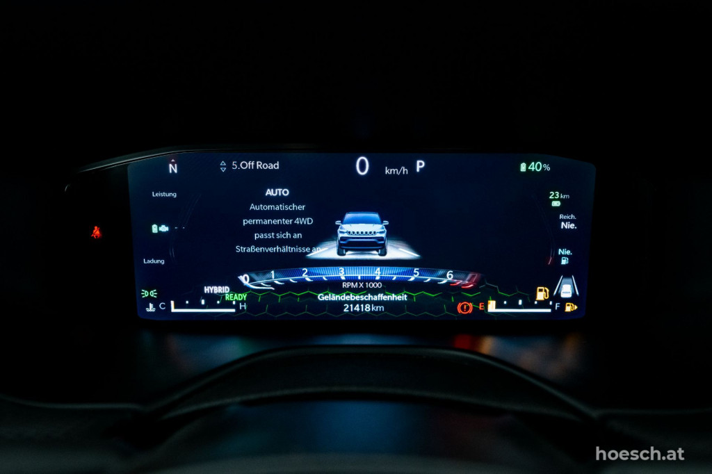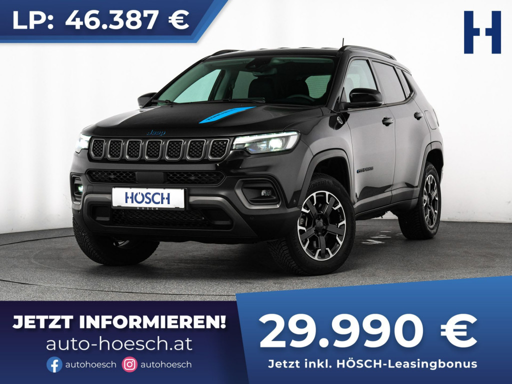 Top ausgestatteter Jeep Compass Trailhawk 4xe Plug-In Hybrid mit 240 PS Systemleistung und Top-Ausstattung zum HÖSCH-Vorteilspreis.