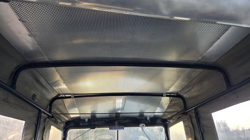 Dachhimmel mit zusätzlicher Blechplatte als Schutz beim Geländefahren (gegen Äste usw.)