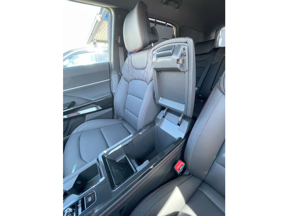 Sitzbezüge in Echtlederausführung mit Steppnähten in den Rückenlehnen - schwarz mit roten Ziernähten