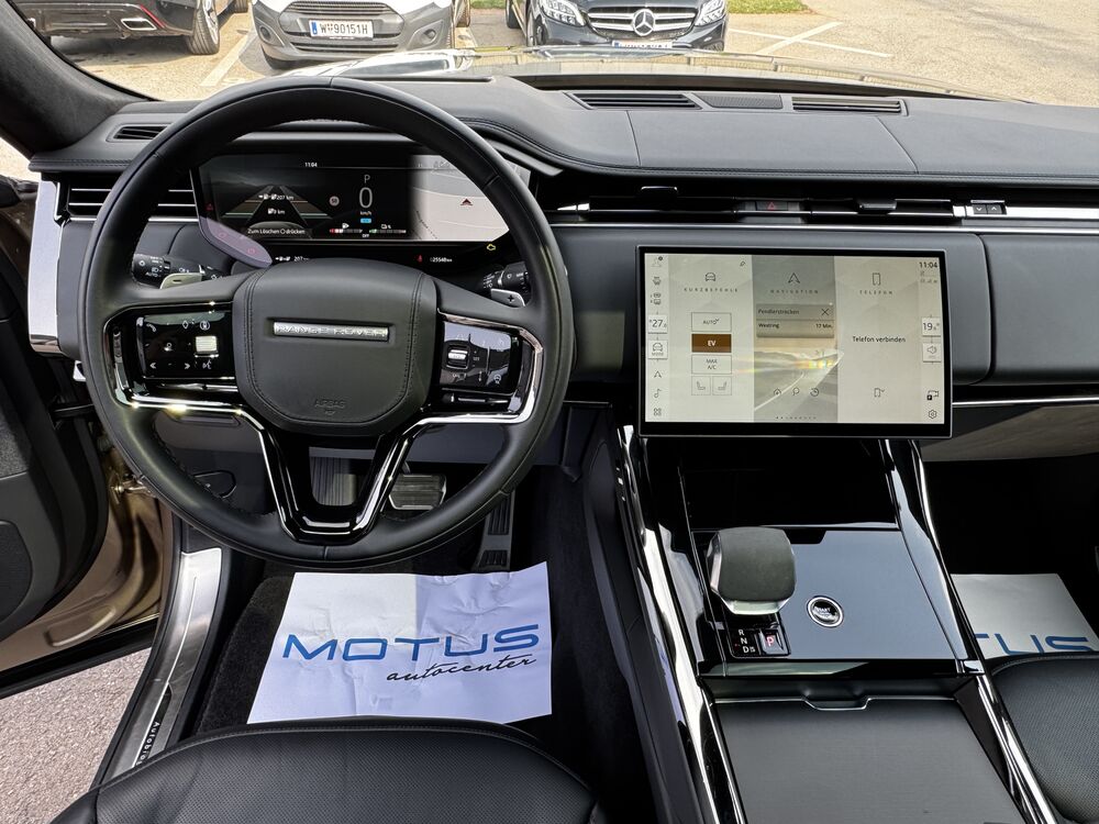 Anhänger-Stabilisierungs-Programm, Blinkleuchten mit Lauflicht, Dachhimmel SV Bespoke Build Premium-Velours in Ebony, Einstiegsleisten mit Schriftzug beleuchtet, Elektr. Bremskraftverteilung, Erste Hilfe-Kasten / Verbandkasten, Fahrassistenz-System: All-Terrain Progress Control Pro (ATPC), Fahrassistenz-System: Tiefenmessung bei Wasserdurchfahrten (Wade Sensing), Gepäck-/Laderaumboden variabel, Gepäck-/Laderaumleuchte, Gepäckraum-Abtrennung (Netz), Gurtschlösser, beleuchtet, Heckscheibe heizbar, Heckscheibenwischer, InControl Remote Premium (Onlinedienste / Apps), Infotainment-System: Pivi Pro, Innenausstattung: Dekoreinlagen Natural Black, Innenraumbeleuchtung Premium, Innenspiegel, digital (Smart View Mirror), Insassen-Schutzsystem proaktiv, Instrumentenanzeige TFT-Farbdisplay (13,7 Zoll), Kindersicherung elektrisch, Kurvenbremskontrolle (Corner-Brake-Control, CBC), Ladekabel mit Typ 2-Stecker (Mode 3), Leder-Paket, Erweiterte Ausstattung, SV Bespoke Build, Armaturentafel (Mittelteil) in Windsor-Leder, Airbag Abdeckung beledert, Mittelkonsole, geteilt, Leder, Türverkleidung (Oberteil) in Windsor-Leder, Lenksäule (Lenkrad) elektr. verstellbar, Luftqualitätssensor, Nebelschlussleuchte, Parkbremse elektrisch, Radstand 2997 mm, Reifen-Reparaturkit, Rückseiten Vordersitze Leder, Schadstoffarm nach Abgasnorm Euro 6e, Sicherheitsgurte höhenverstellbar, Kopfstützen vorn mit verstellbaren Seitenflügeln, Kopfstützen hinten mit verstellbaren Seitenflügeln, Soft-Close-Automatik für Türen, Sondermodell Autobiography, Sonnenblende links mit Spiegel, zweiteilig (beleuchtet), Sonnenblende rechts mit Spiegel, zweiteilig (beleuchtet), Sport-Pedalerie, Teppich-Fußmatten Premium, Verteilergetriebe zweistufig (Untersetzungsgetriebe), Dach Kontrastfarbe, Dynamic-Response-System Pro (Aktive Fahrwerks-Stabilisierung), Komfort-Paket 2, Seitenscheiben vorn Verbundglas, Seitenscheiben hinten Verbundglas, Ionisator zur Luftreinigung Pro mit 2.5 PM Filter, Kühlbox in Mittelkonsole integriert, vorn, Ladekantenschutz (Aluminium), Verglasung hinten abgedunkelt (Privacy Glass), Winter-Paket, Scheibenwaschdüsen heizbar, Frontscheibe heizbarFahrzeugbeschreibung