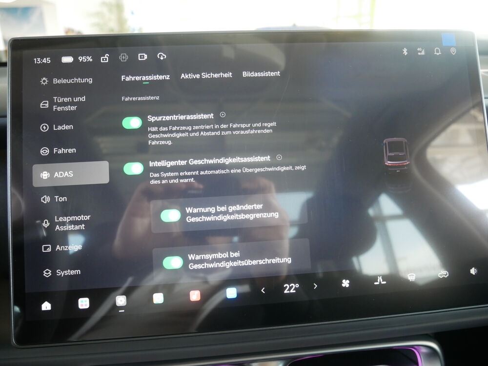 • Adaptive Geschwindigkeitsregelung, Spurhalteassistent, Toter Winkel Erkennung, Notbremsassistent, Kollisionswarner, Rückfahrüberwachungssystem