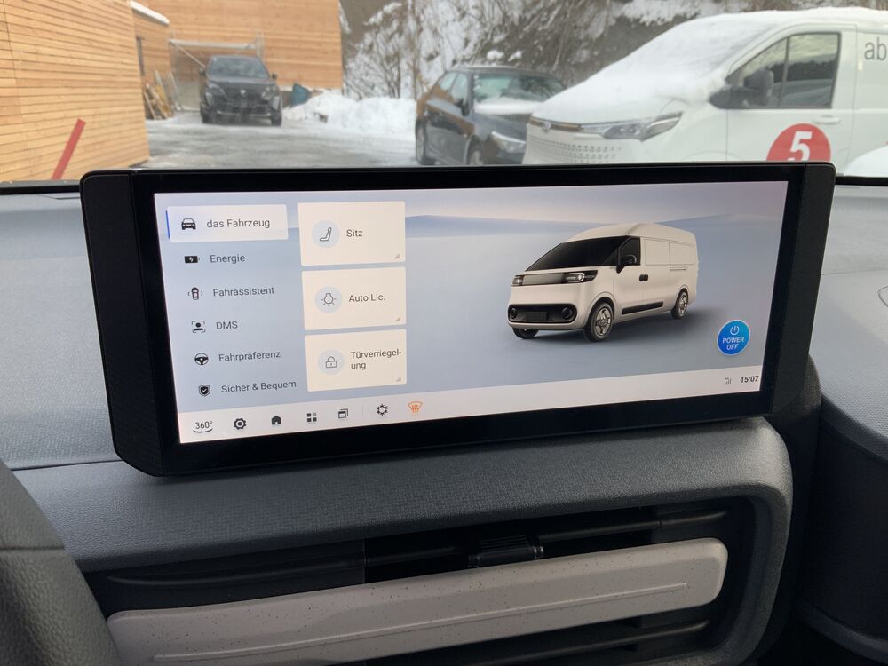 Armlehne Fahrersitz, Blinkleuchten im Außenspiegel integriert, Elektron. Stabilitäts-Programm (ESP), Fahrassistenz-System: Fahrprofilauswahl (Fahrmodi), Feststellbremse elektrisch, Heckflügeltüren (Öffnungswinkel 180 Grad), Innenbeleuchtung im Fahrerhaus und Lade-/Fahrgastraum LED, Karosserie/Aufbau: Kasten Standard, Ladekabel mit Typ 2-Stecker (Mode 3), Lenksäule (Lenkrad) höhenverstellbar, Radstand 3000 mm, Reserverad vollwertig, Sitz vorn links mechan. verstellbar (8-fach), Sitzausstattung: 3-Sitzer, Sitze im Fahrerhaus: Beifahrerdoppelsitz, Steckdose 12V im Lade-/Fahrgastraum, Verkleidung im Lade-/FG-Raum: Seitenwände Schutzblech, halbhochWeitere Angebote: