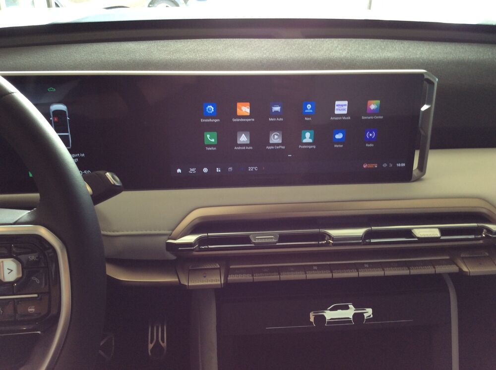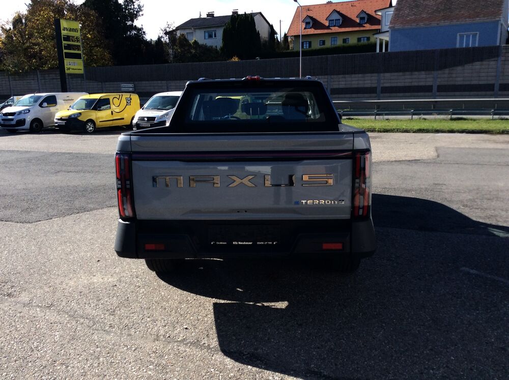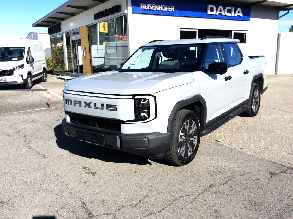 Der neue MAXUS eTERRON 9 ist der erste, vollelektrische Pick-up in Österreich, der serienmäßig über Allrad verfügt. Eine leistungsstarke Batterie und seine gleich zwei Elektromotoren mit 125 kW/170 PS vorne bzw. 200kW/272 PS an der Hinterachse bringen ihn auf eine Systemleistung von sagenhaften 325 kW/442 PS. Die großzügige Pritsche bietet eine hohe Nutz- und Anhängelast. Gleichzeitig muss man im Innenraum nicht auf moderne Features verzichten. Der eTERRON 9 wird damit zum idealen Begleiter - egal auf welchem Terrain.