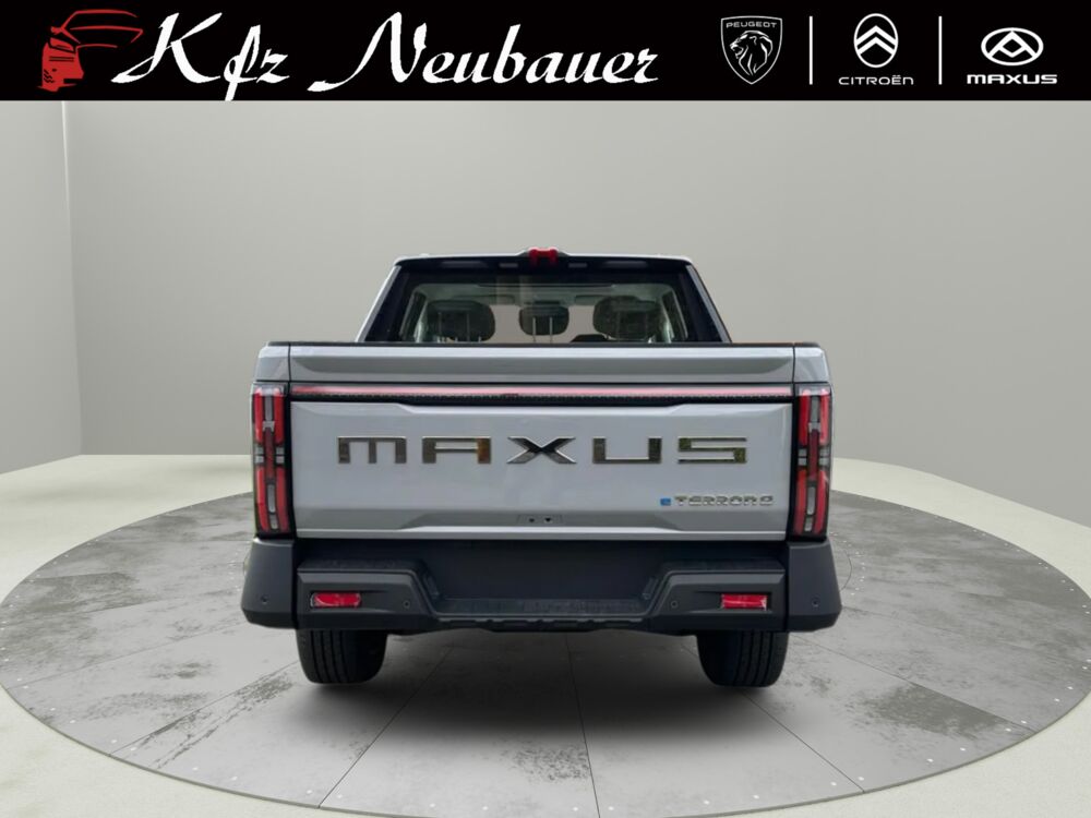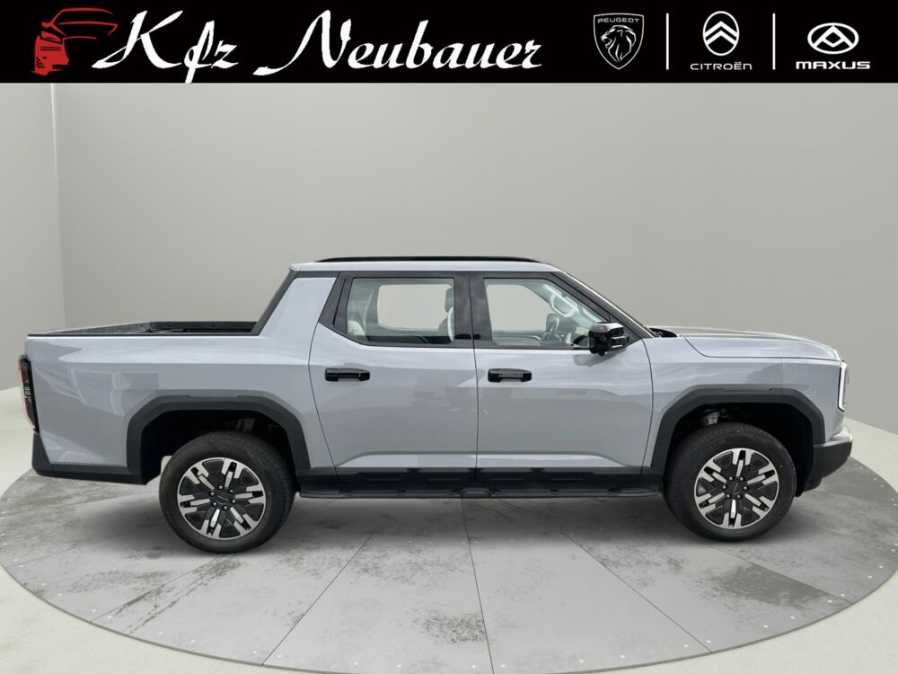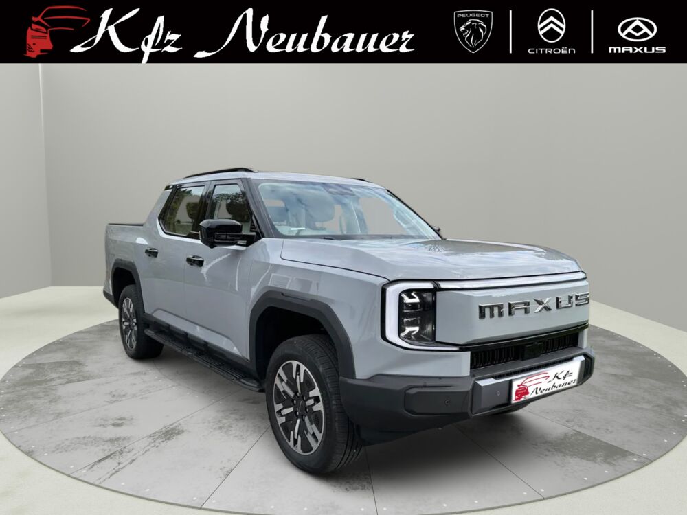 Der neue MAXUS eTERRON 9 ist der erste, vollelektrische Pick-up in Österreich, der serienmäßig über Allrad verfügt. Eine leistungsstarke Batterie und seine gleich zwei Elektromotoren mit 125 kW/170 PS vorne bzw. 200kW/272 PS an der Hinterachse bringen ihn auf eine Systemleistung von sagenhaften 325 kW/442 PS. Die großzügige Pritsche bietet eine hohe Nutz- und Anhängelast. Gleichzeitig muss man im Innenraum nicht auf moderne Features verzichten. Der eTERRON 9 wird damit zum idealen Begleiter - egal auf welchem Terrain.