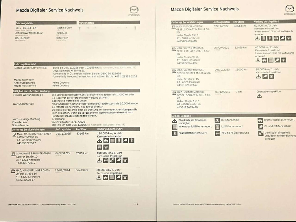 VOLLSTÄNDIGE SERVICE HISTORIE VON MAZDA