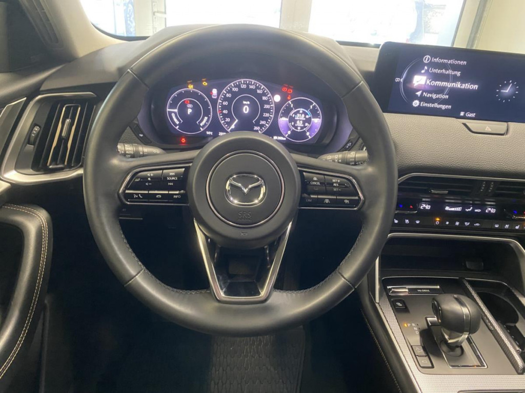 Licht an" - Erinnerung (akustisches Signal), 12,3" TFT Multi-Informations-Display, 12,3" Farbdisplay hochauflösend, 2 zusätzliche USB-Anschlüsse (Rückbank), 3-Punkt-Automatikgurte für alle Sitzplätze, vorne mit Höheneinstellung, 6 Jahre Garantie bis 150.000 Kilometer, Abstands- / Geschwindigkeitswarner, Alexa (Amazon) Sprachassistent, Antiblockiersystem (ABS) mit elektronischer Bremskraftverteilung (EBD) und Bremsassistent (EBA), Ausstiegswarnung bei von hinten herannahenden Verkehrsteilnehmern (BSM Exit Warning), Automatische Türverriegelung während der Fahrt, Automatischer Fernlichtassistent (HBC), Beheizbare Vordersitze, Bergabfahrhilfe (HDC), Berganfahr-Assistent (Hill Hold Assist - HHA), Bluetooth, City-Notbremsassistent (SCBS) mit Fußgängererkennung, DAB-Digitalradio, Dachspoiler, De-Icer Funktion (Bereich Scheibenwischer), E-Call-Notrufsystem, Elektronische Parkbremse inkl. Autohold, Erweiterte Smartphone-Integration mit Wireless Apple CarPlay und Wireless Android Auto inklusive, Fahrstabilitätsprogramm Kinematic Posture Control (KPC), Ferngesteurte Standklimatisierung/Standheizung (PHEV-Motorisierung), FM-Radio, Fußraumbeleuchtung, Fußraumbeleuchtung vorne, Getriebe Automatik- 8-Gg., Gurtstraffer mit Gurtkraftbegrenzer vorne, Handschuhfach beleuchtet, Head-up-Display mit Windschutzscheibenprojektion, HMI Commander, Kinematic Posture Control, Kühlergrill in Piano Schwarz, Kunstlederappikationen im Innenraum, Ladeanschluss Plug-In: AC, 2-phasig, 7,2 kW, Typ2 Ladekabel, Ladegutsicherung nach ISO inklusive Gepäckraumtrennnetz, Ladekabel (Typ2 Mode2/3), Lautsprecher (8), LED - Rückleuchten, LED - Scheinwerfer mit Waschanlage, LED Kodo-Turn-Signal / Coming- und Leaving-Home-Lichtfunktion, Lederschaltknauf, LED-Lichtsignatur vorne/hinten, Lenkradheizung, Luftauslässe für die 2. Sitzreihe, Manuell verstellbare Vordersitze (6-Wege), Mazda Connect System / HMI-Commander, Mi-Drive Fahrmoduswahl (Normal, Sport, Offroad, Anhängerzuggrogramm), Motor Start/Stop-Knopf, Müdigkeitserkennung (DAA), My Mazda App, Notbremsassistent (SBS) mit Fußgänger- und Radfahrererkennung und Kreuzungsfunktion, Notbremsassistent vorne/hinten mit Querverkehrswarnung und Gefahrenbremsung (FCTB), Notbrems-Warnblinkautomatik (ESS), Regen- und Lichtsensor, Reifen-Reparatur-Set, Remote Klimatisierung / Standheizung, Rückfahrkamera, Schaltwippen, Schlüsselloses Zugangssystem (Smart Keyless Entry), Schlüsselloses Zugangssystem / Automatische Türverriegelung während der Fahrt, Signature Wing in Chrom-Optik, Sitzbezüge in Stoff, Spurhaltewarnung (LDWS) / Spurhalteassistent (LKA), Spurwechselassistent Plus (BSM) mit Lenkunterstützung, Spurwechselassistent Plus (BSM) mit Lenkunterstützung (ELK), Tempolomit Informationssystem (ISA), USB-Anschluss, Verkehrszeichenerkennung (TSR), Wireless Apple CarPlay und Wireless Android Auto, Zweiflutige Auspuffanlage, Zweiphasige Lademöglichkeit (PHEV-Motorisierung)Alarmanlage, 360° Umgebungsmonitor, BOSE-Soundsystem, adaptive LED-Matrix, Querverkehrswarnung, Adaptiver Tempomat,Sitzklimatisierung vorne, beheizbare Rücksitze, Head-up Display, Remote-Klimatisierung/Standheizung (PHEV),