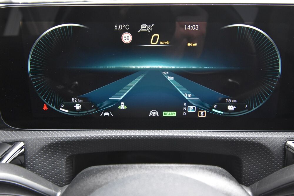 Technologie-Paket: Head-up Display (Projektion direkt auf die Scheibe), voll-digitales Widescreen-Cockpit und MBUX Multimediasystem.