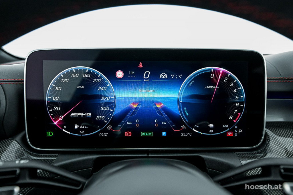 • AMG Night-Paket II (inkl. AMG Kühlverkleidung abgedunkelt, Typografie in Schwarzchrom an den vorderen Kotflügeln und am Heck)