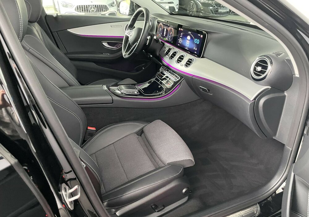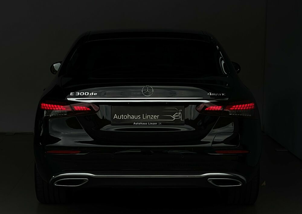Der Mercedes-Benz E 300 de 4MATIC aus dem Jahr 2021 präsentiert sich als elegante und zugleich hochmoderne Limousine, die Effizienz, Komfort und Leistung auf beeindruckende Weise vereint. Als Plug-in-Hybrid kombiniert er einen kraftvollen Dieselmotor mit einem Elektromotor und ermöglicht damit sowohl dynamisches Fahren als auch lokal emissionsfreies Gleiten im Stadtverkehr. Besonders hervorzuheben ist die stilvolle Ambientebeleuchtung, die den Innenraum in individuell wählbaren Farben erstrahlen lässt und für eine angenehme Wohlfühlatmosphäre bei jeder Fahrt sorgt. Die integrierte Standheizung bietet zusätzlichen Komfort, indem sie das Fahrzeug bereits vor Fahrtbeginn auf eine angenehme Temperatur bringt – ideal für kalte Tage. Die Rückfahrkamera erleichtert das Einparken erheblich und sorgt für mehr Sicherheit und Übersicht im Stadtverkehr oder in engen Parklücken. Dank des 4MATIC-Allradantriebs genießt du zudem optimale Traktion und Fahrstabilität bei unterschiedlichsten Straßenverhältnissen.Hybrid 225 kW/ 306 PS (Verbrenner 2, 0 Ltr. - 143 kW/ 194 PS Diesel)