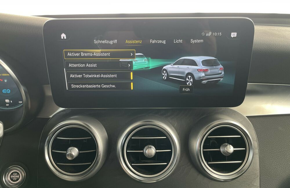 Zum Verkauf steht ein GLC 300de aus dem Jahr 2022, der modernste Plug-in-Hybrid-Technologie mit starken 306 PS bietet. Die edle MATT-Lackierung verleiht dem GLC einen besonders markanten sowie sportlich-luxuriösen Auftritt und hebt ihn klar von der Masse ab – perfekt für Stadt, Pendelstrecken und die Langstrecke. Ein absolutes Highlight ist das große Panorama-Glasdach, das den Innenraum hell und offen wirken lässt und für ein exklusives Fahrgefühl sorgt. Besonders hilfreich ist auch die 360-Grad-Kamera, die entspanntes Einparken sowie perfekte Rundumsicht ermöglicht, während das Head-up-Display alle wichtigen Fahrinformationen direkt ins Sichtfeld projiziert.Hybrid 225 kW/ 306 PS (Verbrenner 2, 0 Ltr. - 143 kW/ 194 PS Diesel)