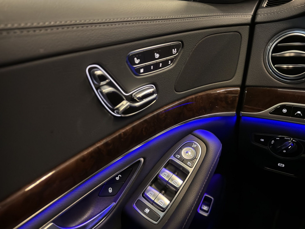 Besonders hervorzuheben ist die umfangreiche Ausstattung: DISTRONIC PLUS mit Lenk-Assistent, Fahrassistenz-Paket Plus, PRE-SAFE Plus und die Remote-Parkfunktionen entlasten im Alltag deutlich. Innen sorgt die Kombination aus klimatisierten Sitzen, Memory, Multikontur, AIRMATIC Luftfederung, HUD und hochwertigen Materialien wie Wurzelnuss-Holz für das typische S-Klasse-Erlebnis.