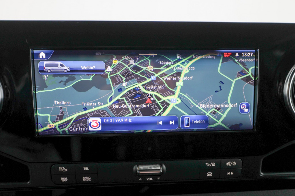 Navigation, Sitzheizung F, Park-Paket mit RFK, LED-Lichtband im LR, Laderaum-Paket 2, Schwingsitz Komfort F, Holzfußboden, Innenverkl. LR• EY5||Mercedes-Benz Notrufsystem