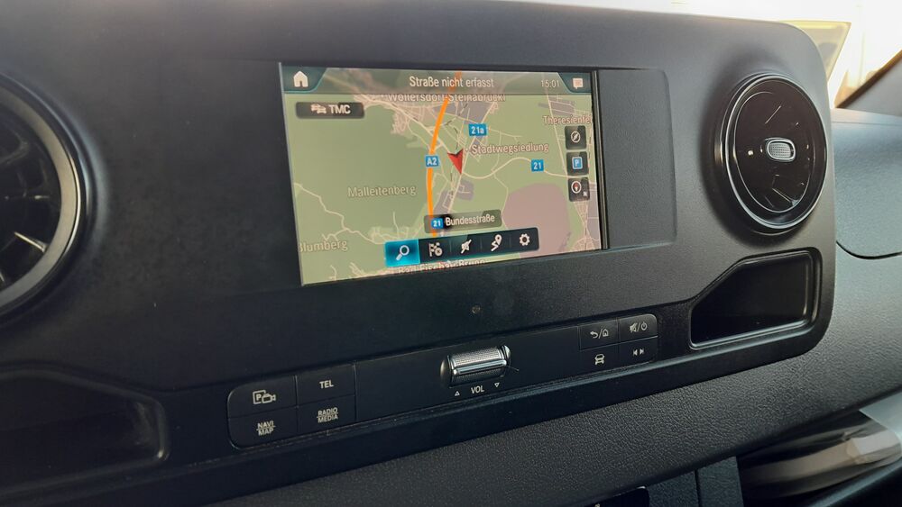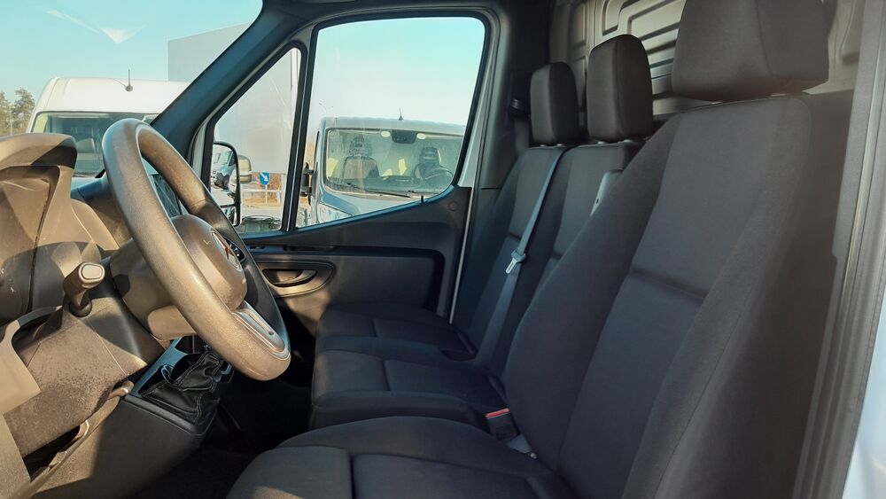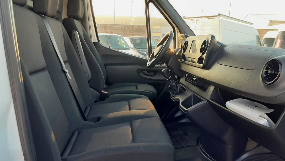3. Bremsleuchte, Ablagefach oberhalb Frontscheibe, Ablagefach unterhalb Armaturentafel Beifahrerseite, Adaptives Bremslicht, Anzeige für Waschwasserstand, Außentemperaturanzeige, Elektr. Bremskraftverteilung (EBV), Fahrassistenz-System: Pannenmanagement, Fahrwerk: Stabilisierung Stufe I, Geräuschmaßnahme außen, Karosserie/Aufbau: Kasten Hochraum Standard, Kindersicherung, Kommunikationsmodul (LTE) für digitale Dienste, Kraftstofftank: Haupttank 71 Ltr., Lenkrad (Lenksäule mech. verstellbar), Leuchtweitenregelung, LKW-Zulassung, Markierungsleuchten seitlich, Radstand 4325 mm, Schadstoffarm nach Abgasnorm Euro 6d, Sicherheitsgurt-System mit Warnanlage (Beifahrerseite), Sicherheitsgurt-System mit Warnanlage (Fahrerseite), Sitzbezug / Polsterung: Stoff, Stahlfelgen 6,5x16, Vlies-Batterie 92 Ah, Wartungsintervall-Anzeige Assyst, Zul. Gesamtgewicht 3,50 t, Akustik-Paket, Anfahrhilfe (Berganfahr-Assistent), Deckenleuchte im Laderaum mit Türkontakt, Einstiegsgriff an Hecksäule hinten rechts, Fzg. ohne Fahrzeugabsenkung, Hecktür (Öffnungswinkel 270 Grad), Holzfussboden im Laderaum, Komfort-Fahrwerk, Laderaumleuchte LED, Leitungskanal an Heckportal, Leitungskanal an Seitenwand, Navigationssystem für Multimediasystem MBUX, Reserverad in Fahrbereifung, Reserveradhalter unter Rahmenende inkl. Wagenheber, Sitze im Fahrerhaus: Beifahrerdoppelsitz, Sitze im Fahrerhaus: Fahrersitz Komfort, Trittstufe Hecktür, Verkleidung im Lade-/FG-Raum: Kunststoff hoch (bis Dach), Vorderachse verstärkt, WagenheberFahrzeugbeschreibung