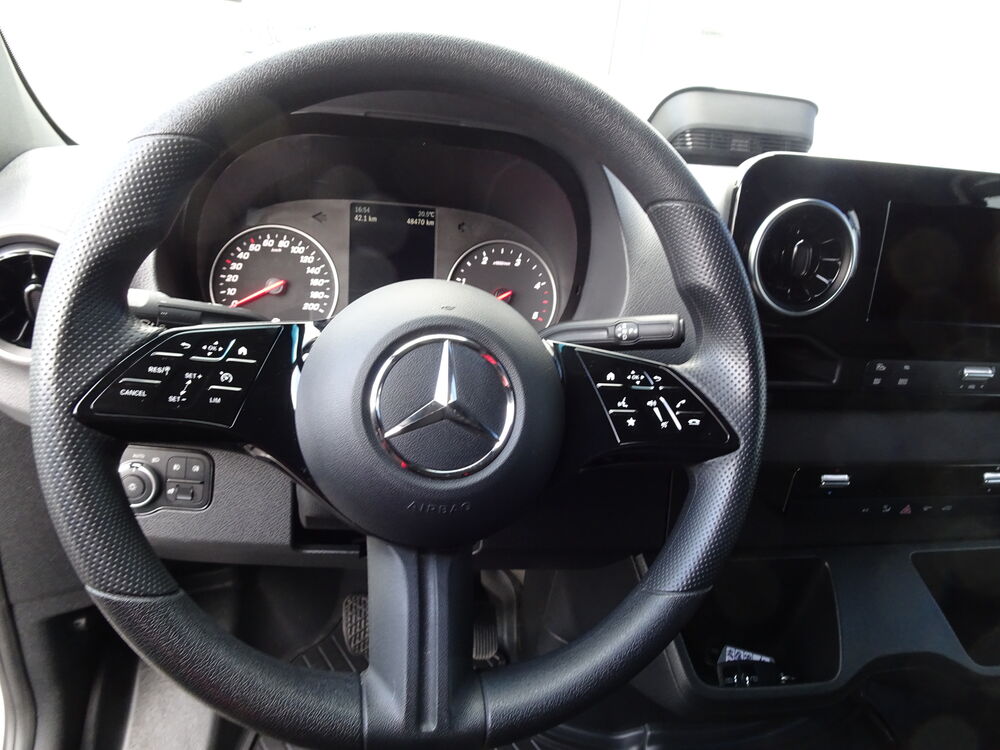 3. Bremsleuchte, Ablagefach oberhalb Frontscheibe, Ablagefach unterhalb Armaturentafel Beifahrerseite, Adaptives Bremslicht, Akustik-Paket, Außentemperaturanzeige, Einstiegsgriff an Hecksäule hinten rechts, Fahrassistenz-System: Pannenmanagement, Generator 250 A, Geräuschmaßnahme außen, Karosserie/Aufbau: Kasten Hochraum Standard, Kombiinstrument mit Farbdisplay, Kommunikationsmodul (LTE) für digitale Dienste, Kraftstofftank: Haupttank 93 Ltr., Lenkrad (Lenksäule mech. verstellbar), LKW-Zulassung, Markierungsleuchten seitlich, Pro, Radstand 3665 mm, Schadstoffarm nach Abgasnorm Euro 6e, Sicherheitsgurt-System mit Warnanlage (Beifahrerseite), Sicherheitsgurt-System mit Warnanlage (Fahrerseite), Sitzbezug / Polsterung: Stoff, Sitze im Fahrerhaus: Beifahrerdoppelsitz, Vlies-Batterie 92 Ah, Vorrüstung Remote Service Plus, Zul. Gesamtgewicht 3,50 t, Ablage im Dachhimmel Fahrerhaus, Außenspiegel ohne integrierter Blinkleuchte, Blinkleuchten vorn seitlich, Bodenbelag: Kunststoff im Lade-/Fahrgastraum, Deckenleuchte im Laderaum mit Bewegungsmelder, Fahrwerk: Stabilisierung Stufe I, Fußmatten Allwetter, Fzg. ohne Fahrzeugabsenkung, Haltegriffe A-Säulen, Hecktür (Öffnungswinkel 270 Grad), Hold-Funktion, Induktionsladeschale für Smartphone (Wireless Charging), Innenausstattung: Luftdüsen Instrumententafel, Klappdeckel für Ablagefach, Komfortbeleuchtung im Fahrgast-/Laderaum, Kraftstofftank mit Falschbetankungsschutz, Laderaum-Paket 2, Einstiegsgriff an Hecksäule hinten links, Laderaumleuchte LED, Verzurrschienen im Laderaum - Seitenwand an Brüstungsgurt, Leitungskanal an Heckportal, Leitungskanal an Seitenwand, Navigationssystem für Multimediasystem MBUX, Sitze im Fahrerhaus: Fahrersitz mit Armlehne, Sitze im Fahrerhaus: Schwingsitz Komfort, Fahrerseite, Sitze im Fahrerhaus: Sitzkasten Fahrersitz, niedrig, Steckdose (12V-Anschluß) im Fahrerhaus, Trittstufe Hecktür, Verkleidung im Lade-/FG-Raum: Holz hoch (bis Dach), Verzurrschienen im Laderaum - Seitenwand an Dachrahmen, Vorderachse verstärkt, Vorrüstung Elektrik, Parametrierbares Sondermodul, Winter-Paket, Scheibenwaschanlage (Wet Wiper System)Fahrzeugbeschreibung