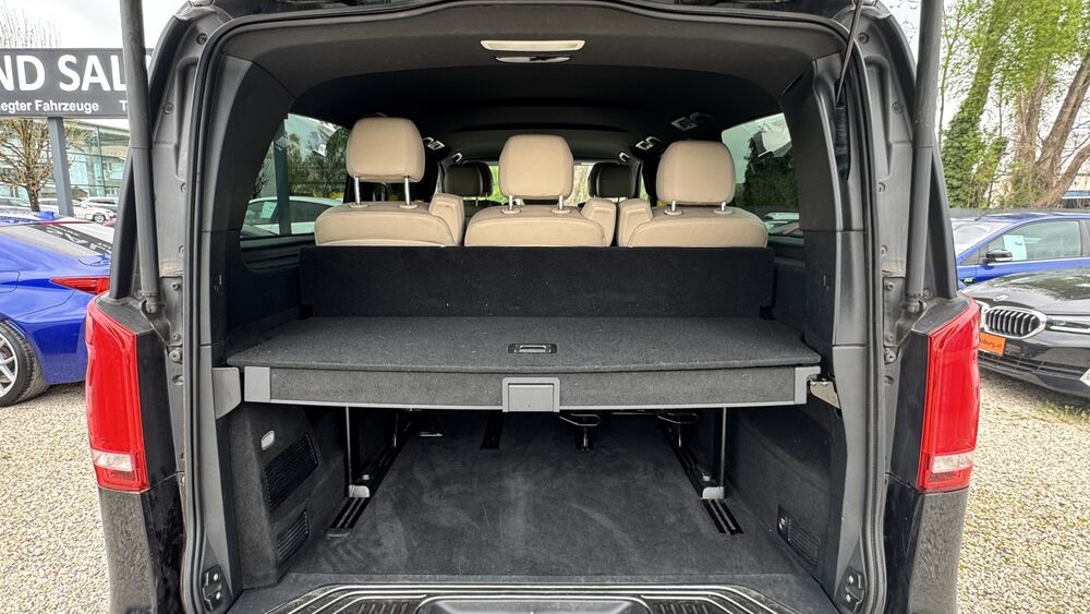 Adaptives Bremslicht, Anzeige für Waschwasserstand, Außenspiegel asphärisch, beide, Außentemperaturanzeige, Avantgarde, BlueEfficiency-Paket, Design- und Ausstattungslinie Avantgarde, Einstiegsleisten mit Schriftzug Mercedes-Benz (beleuchtet), Einstiegsleuchten, Fenster für hintere Türen / Heckklappe mit Wisch-/Waschanlage, Fenster im Lade-/FG-Raum: - feststehend, vorn links, Fenster im Lade-/FG-Raum: - feststehend, vorn rechts, Feststellbremse elektrisch, Haltegriffe im Fond, Handschuhfach abschließbar, Heckscheibe aufstellbar, Heckscheibe heizbar, Intelligent Light System LED, Karosserie/Aufbau: Bus, Karosserie/Aufbau: extra lang, Kindersicherung, Kombiinstrument mit Farbdisplay, Kommunikationsmodul Mercedes me connect (Internetbasierende Dienste), Lenkrad (Lenksäule mech. verstellbar), Modellbezeichnung geändert (mit Code), PKW-Zulassung, Radstand 3430 mm, Schadstoffarm nach Abgasnorm Euro 6, Sitzausstattung: Schnellverriegelung für Sitzschienen-System, Sonnenblenden mit Spiegel (beleuchtet), Warmluftkanal zum Lade-/Fahrgastraum, Wartungsintervall-Anzeige Assyst, Infotainment-System: Remote Online, Dachverkleidung / Innenhimmel Stoff schwarz, Fahrassistenz-System: aktiver Park-Assistent, Fahrwerks-Dämpfungssystem Agility Control, Heckklappe mit automatischem Öffnungs- und Schließsystem, Komfort öffnen + schliessen mit Infrarot Fernbedienung, Innenraumfilter: Pollenfilter, Kraftstofftank: vergrößert, Laderaumunterteilung, Mittelkonsole vorn mit Rollo / Ablage, Reserverad mit Wagenheber, Sitze im Lade-/FG-Raum: 1.Reihe, 3er-Sitzbank Komfort, Sitze im Lade-/FG-Raum: 2.Reihe, 3er-Sitzbank Komfort, Spiegel-Paket, Außenspiegel mit Umfeldleuchte, Surround-System Burmester, Verglasung hinten abgedunkelt / Schwarzglas, Zul. Gesamtgewicht 3,20 t, Zusatzheizung (Warmwasser)Fahrzeugbeschreibung