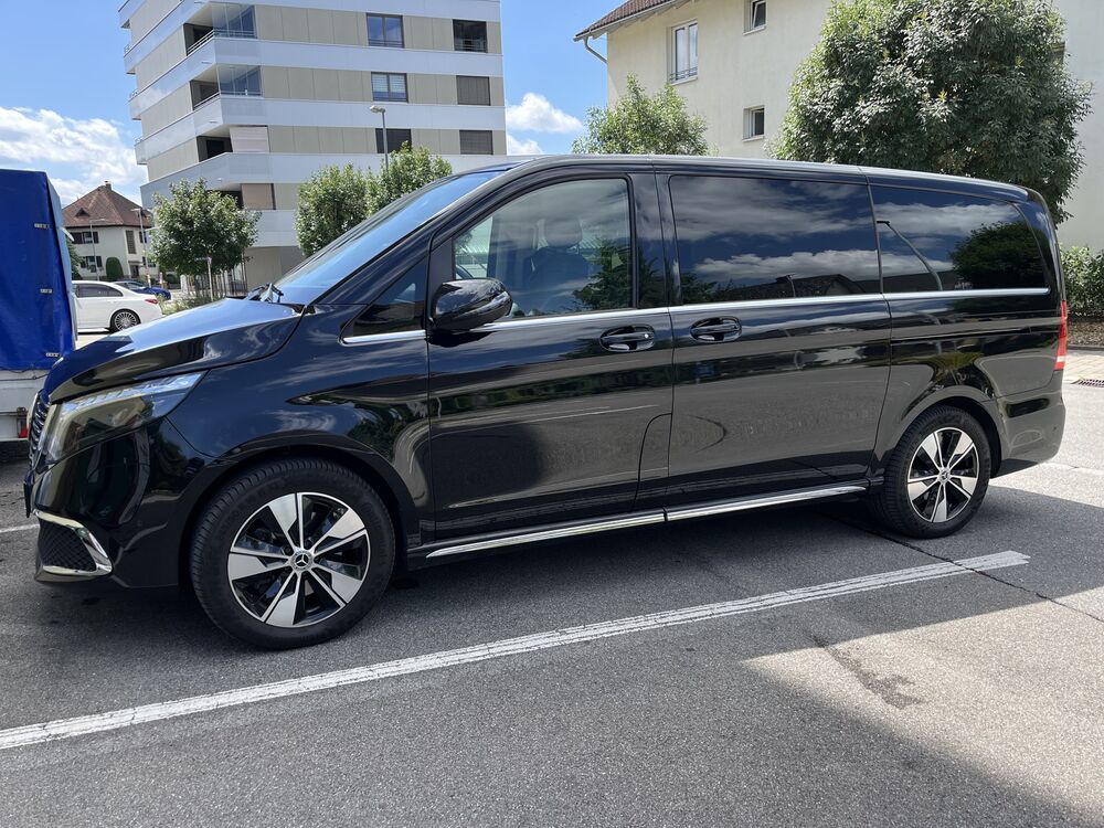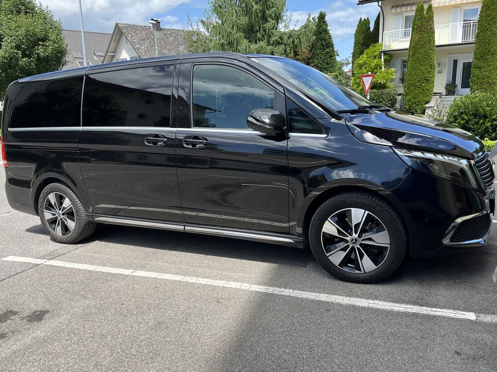 3. Bremsleuchte, Adaptives Bremslicht, Akustischer Umfeldschutz (Außensound), Anzeige für Waschwasserstand, Armlehnen Fahrgastraum, Außentemperaturanzeige, Bodenbelag: Teppich im Fahrerraum, Bodenbelag: Teppich im Lade-/Fahrgastraum, Dachverkleidung, Dachverkleidung / Innenhimmel Stoff grau, Einstiegsgriff hinten, Einstiegsleuchten, EQV 300, Fahrassistenz-Paket Standard, Fahrassistenz-System: Pannenmanagement, Fahrassistenz-System: Verkehrs-Informations-System Live Traffic, Fenster für hintere Türen / Heckklappe mit Wisch-/Waschanlage, Fenster im Lade-/FG-Raum: - feststehend, hinten, Fenster im Lade-/FG-Raum: - feststehend, vorn links, Fenster im Lade-/FG-Raum: - feststehend, vorn rechts, Feststellbremse elektrisch, Fußraumbeleuchtung vorn, Haltegriffe im Fond, Handschuhfach abschließbar, HV-Batterie 90 kWh, Karosserie/Aufbau: Bus, Kindersicherung, Kombiinstrument mit Farbdisplay, Komfortbeleuchtung im Fahrgast-/Laderaum, Kommunikationsmodul Mercedes me connect (Internetbasierende Dienste), Ladekabel (5,0 m) mit Typ 2-Stecker (20 A, Mode 3), Lenkrad (Lenksäule mech. verstellbar), Leuchtweitenregelung, PKW-Zulassung, Radstand 3200 mm, Rückspiegel innen, Sicherheitsgurt-System mit Warnanlage (Beifahrerseite), Sicherheitsgurt-System mit Warnanlage (Fahrerseite), Sitzausstattung: Schnellverriegelung für Sitzschienen-System, Sitze im Fahrerhaus: Fahrersitz Komfort, Sonnenblenden mit Spiegel (beleuchtet), Steckdose (12V-Anschluß) im Fahrerhaus, Stoßfänger / Stoßf.-Leiste seitlich + Griff an Heckklappe lackiert, Umfeldleuchte in Heckklappe, Vlies-Batterie 92 Ah, Vorbereitung Navigationssystem (für Multimediasystem MBUX), Warmluftkanal zum Lade-/Fahrgastraum, Zul. Gesamtgewicht 3,50 t, Ablagenetz an Vordersitzlehne links, Ablagenetz an Vordersitzlehne rechts, Airmatic (Luftfederung), Armaturentafel Oberteil in Ledernachbildung, Ausstattungs-Paket: Avantgarde Line, Einstiegsleisten mit Schriftzug Mercedes-Benz (beleuchtet), Heckscheibe aufstellbar, Sitze im Fahrerhaus: Beifahrersitz Komfort, Beleuchtung im Haltegriff Fond mit Lesespot, Design-Paket Exterieur, Kühlergrill schwarz lackiert, hochglänzend, mit Chromleisten (EQV Frontdesign High), Außenspiegel schwarz lackiert, Schwellerabdeckung / -verkleidung, Dachkantenspoiler AMG, Verglasung hinten abgedunkelt / Schwarzglas, Fußmatten Velours, Geschwindigkeits-Begrenzeranlage 160 km/h, Getränkehalter hinten, Heckklappe mit automatischem Öffnungs- und Schließsystem, Innenausstattung: Zierteile Holz-Optik Ebenholz, Intelligent Light System LED, Kindersitzerkennung im Beifahrersitz (automatisch), Komfort öffnen + schliessen mit Infrarot Fernbedienung, Mittelkonsole mit Kühlfach, Navigationssystem Plus für Multimediasystem MBUX, Parktronic-System (PTS), PRE-SAFE-System, Sitzbezug / Polsterung: Leder Lugano, Sitze im Fahrerhaus: Beifahrersitz mit Lendenwirbelstütze, Sitze im Fahrerhaus: Fahrersitz mit Lendenwirbelstütze, Sitze im Lade-/FG-Raum: 1.Reihe, 3er-Sitzbank Komfort, Sitze im Lade-/FG-Raum: 2.Reihe, 3er-Sitzbank Komfort, Spiegel-Paket, Außenspiegel mit Umfeldleuchte, Steckdosen (12V-Anschluß) im Lade-/Fahrgastraum, 2-fach, Surround-System BurmesterFahrzeugbeschreibung