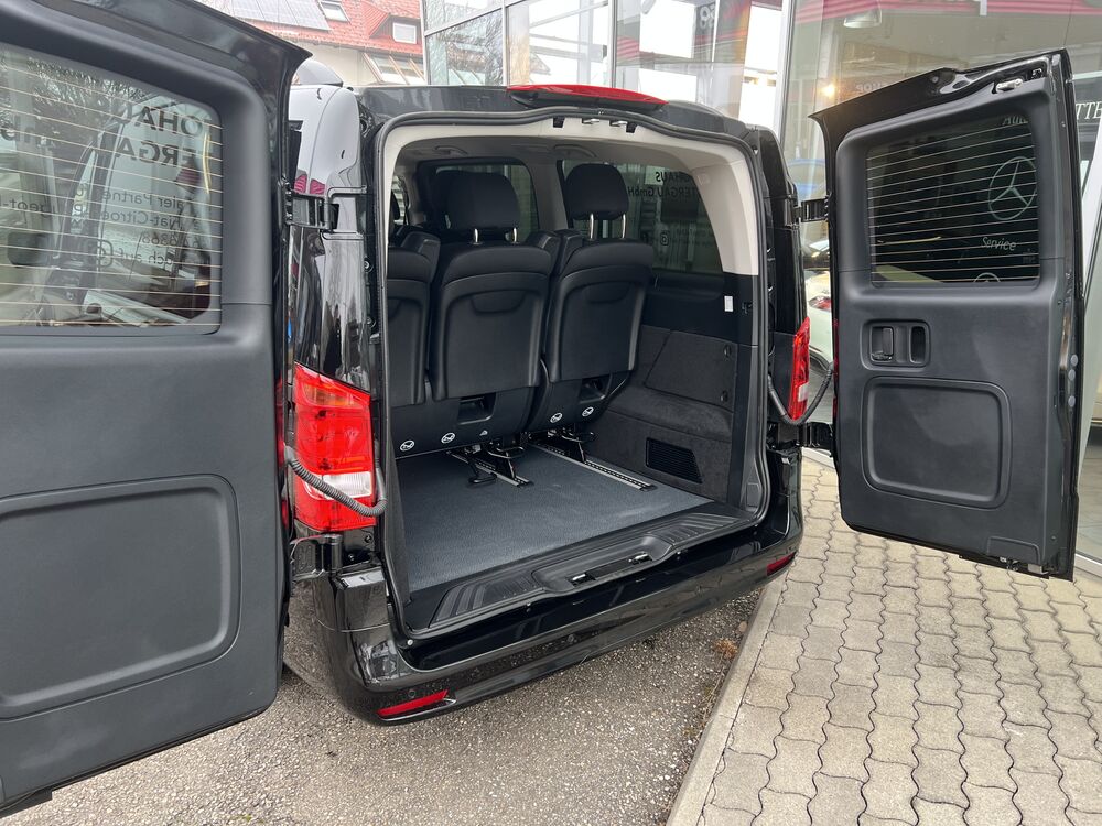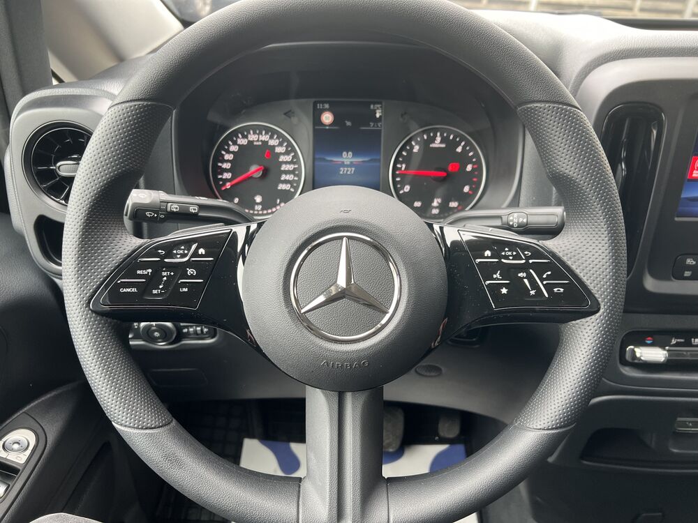 3. Bremsleuchte, Adaptives Bremslicht, Außentemperaturanzeige, BlueEfficiency-Paket, Bodenbelag: Fahrgastraum TPO, Drehzahlmesser, Einstiegsgriff hinten, Fahrassistenz-System: Pannenmanagement, Fenster für hintere Türen / Heckklappe mit Wisch-/Waschanlage, Fenster im Lade-/FG-Raum: - feststehend, hinten, Fenster im Lade-/FG-Raum: - feststehend, vorn links, Fenster im Lade-/FG-Raum: - feststehend, vorn rechts, Feststellbremse elektrisch, Generator 250 A, Getränkehalter vorn, Haltegriffe im Fond, Handschuhfach abschließbar, Heckklappe, Innenverkleidung gehobene Ausführung, Karosserie/Aufbau: Kombi Standard, Kindersicherung, Kombiinstrument mit Farbdisplay, Kommunikationsmodul (LTE) für digitale Dienste, Kraftstofftank mit Falschbetankungsschutz, Kraftstofftank: 70 Ltr., Lenkrad (Lenksäule mech. verstellbar), Leseleuchten im Fond, Leuchtweitenregelung, Modellpflege (2) mit Code, PKW-Zulassung, Pro, Radstand 3200 mm, Radvollabdeckung, Rückspiegel innen, Schadstoffarm nach Abgasnorm Euro 6e, SCR-System (AdBlue-Technologie), Sicherheitsgurt-System mit Warnanlage (Fahrerseite), Sitzbezug / Polsterung: Stoff Caluma, Sitze im Fahrerhaus: Beifahrersitz mit Lendenwirbelstütze, Sitze im Fahrerhaus: Fahrersitz Komfort, Sitze im Fahrerhaus: Fahrersitz mit Lendenwirbelstütze, Sitze im Fahrerhaus: Fahrersitz mit Sitztiefenverstellung, Stahlfelgen 6,5x17, Steckdose (12V-Anschluß) im Fahrerhaus, Vlies-Batterie 92 Ah, Warmluftkanal zum Lade-/Fahrgastraum, Wartungsintervall-Anzeige Assyst, Zul. Gesamtgewicht 3,10 t, Zweiwege Lautsprecher vorn und hinten, Armlehnen Fahrgastraum, Fahrassistenz-System: Verkehrs-Informations-System Live Traffic, Navigationssystem für Multimediasystem MBUX, Reserverad mit Wagenheber, Sitzausstattung: Schnellverriegelung für Sitzschienen-System (3 Schienen), Sitze im Fahrerhaus: Beifahrersitz als Zweiersitz, Sitze im Lade-/FG-Raum: 1.Reihe, 3er-Sitzbank Komfort, Sitze im Lade-/FG-Raum: 2.Reihe, 3er-Sitzbank Komfort, Verglasung hinten abgedunkelt / SchwarzglasFahrzeugbeschreibung