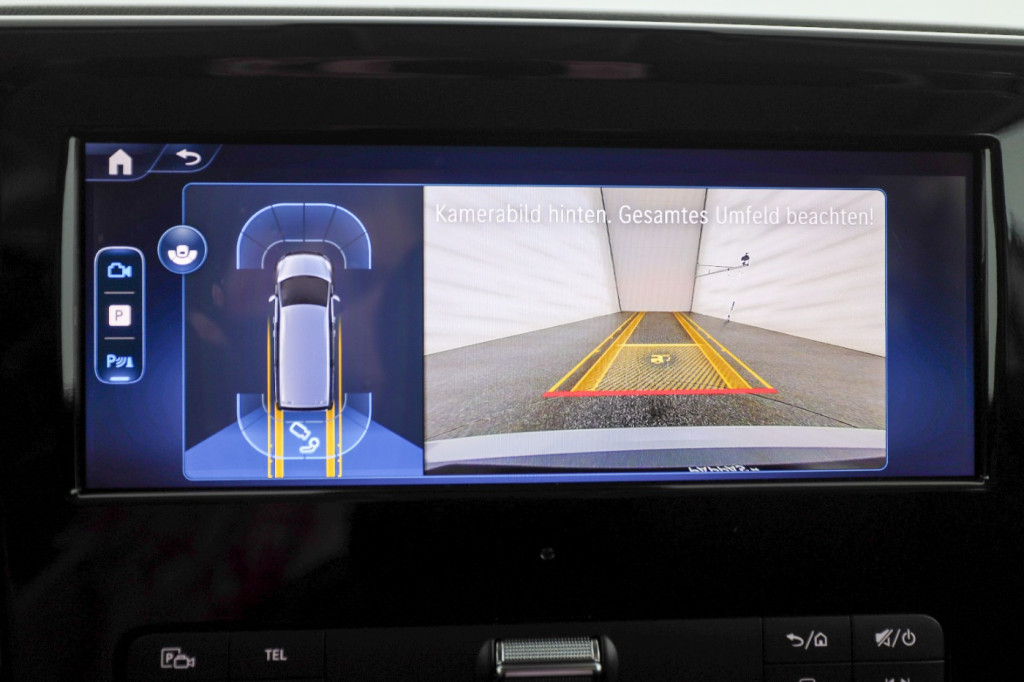 Lederlenkrad, Dachreling, Navigation, Smartphone-Integrationspaket, Distronic, Spiegel-Paket, Park-Paket mit RFK, Multibeam, Schiebetüre li, Colorvergl• EY5||Mercedes-Benz Notrufsystem