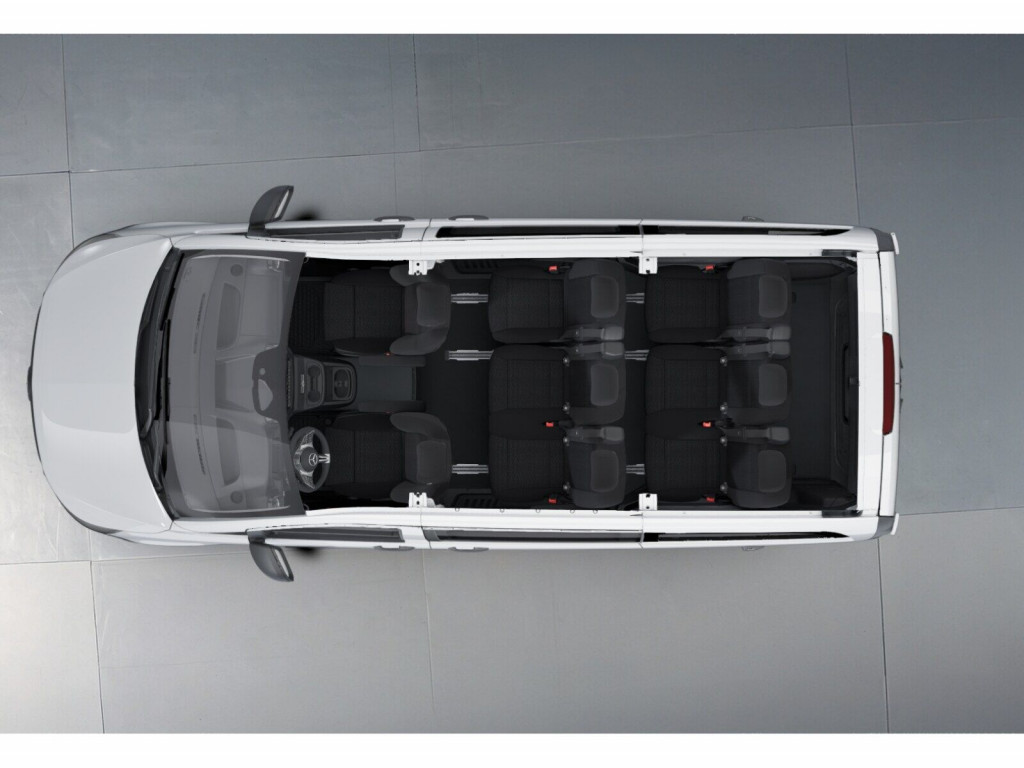 Chrom-Interieur-Paket, Sitzheizung Fahrer, Tempmatic, Park-Paket mit RFK, Schiebetür links, Hecktüren 2flügelig, Colorverglasung• EY5||Mercedes-Benz Notrufsystem