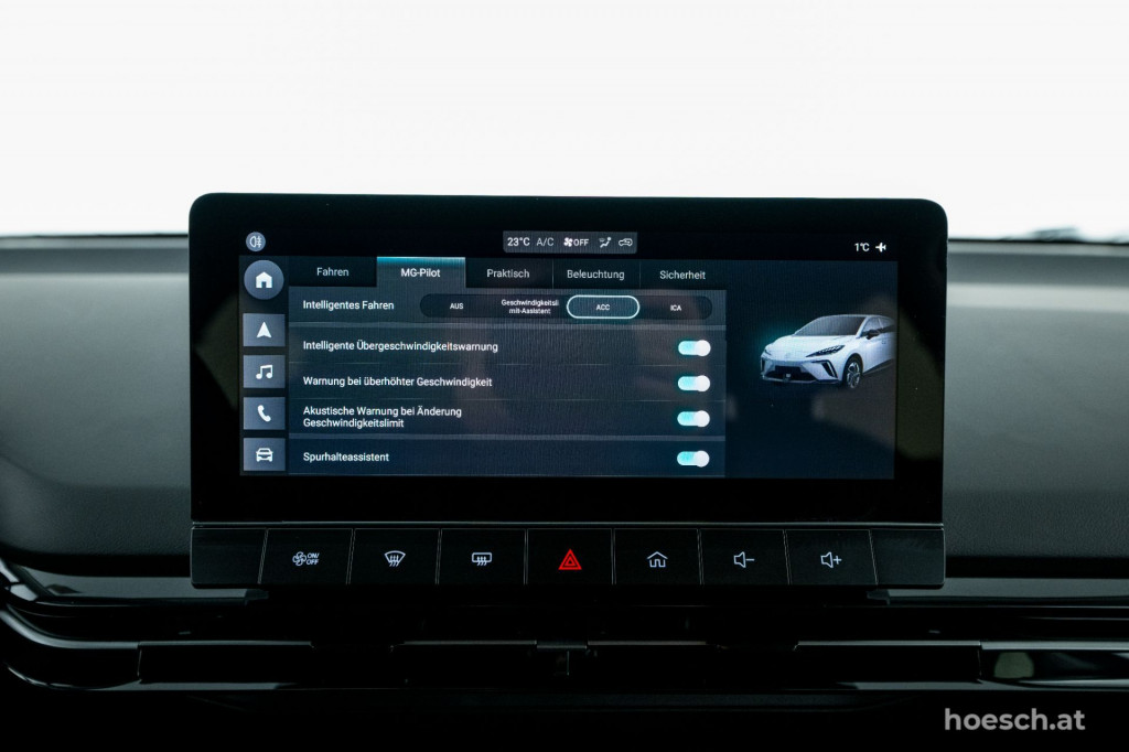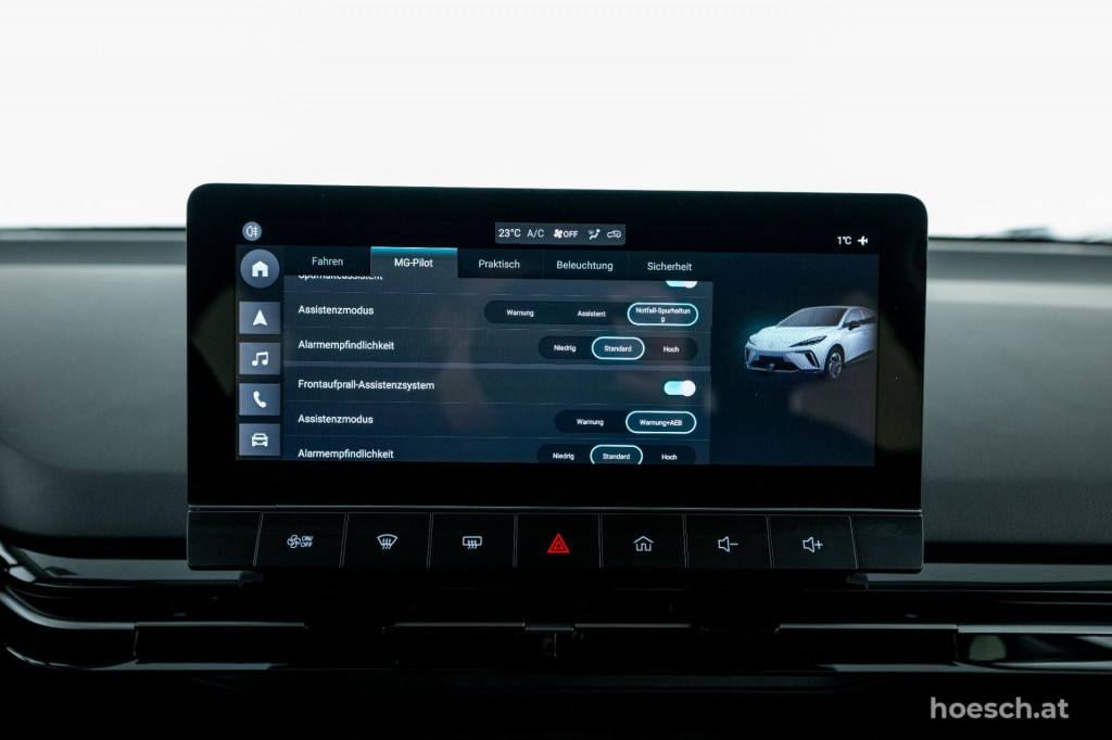 • Top Assistenten (wie MG Pilot, Totwinkelüberwachung (BSM) inkl. Querverkehrswarner hinten, Spurhalteassistent, Notbremsassistent, Adaptiver Geschwindigkeitsassistent, Stauassistent, Verkehrszeichenerkennung, etc.)