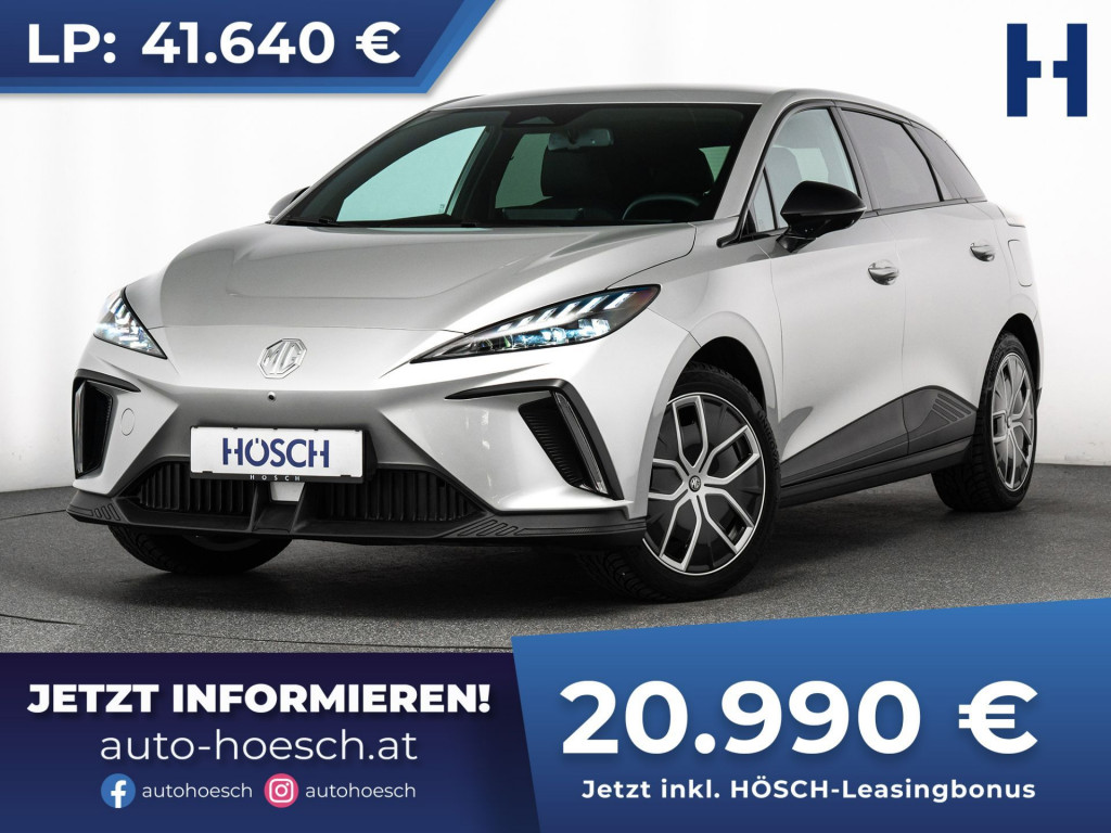 Top Neuwagen mit Tageszulassung MG4 64kWh Luxury mit umfangreicher Ausstattung zum HÖSCH-Vorteilspreis.Preis inkl. HÖSCH-Leasingbonus: 20.990 € (-50%)