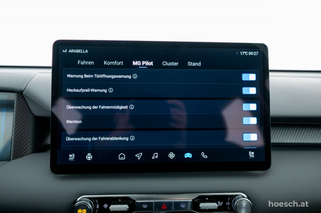 • MG Pilot Assistenzsysteme (inkl. Adaptive Geschwindigkeitsregelung "ACC", Spurhalteassistent, Spurwechselassistent, Notfall-Spurhalteassistent, Verkehrsstauassistent, Totwinkelüberwachung, etc.)