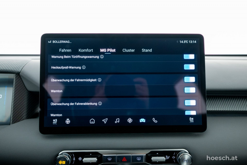 • MG Pilot Assistenzsysteme (inkl. Adaptive Geschwindigkeitsregelung "ACC", Spurhalteassistent, Spurwechselassistent, Notfall-Spurhalteassistent, Verkehrsstauassistent, Totwinkelüberwachung, etc.)