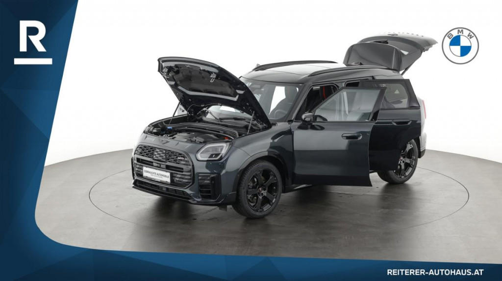 Allradsystem, Automatik, Sportgetriebe, Auffahrwarnung mit City-Anbremsfunktion, Automatikgetriebe mit Schaltwippen, Radio Media, Sportbremse, Sportpaket, Teleservice MINI, Adaptives Fahrwerks-Paket, Aerodynamikpaket, Fahrdynamikpaket, 7-Gang Steptronic Sportgetriebe mit DKG, Connected Drive, Leichtmetallräder, Leichtmetallräder 19 Zoll, Side View Camera, Navigationssystem, Klimaautomatik, Sitze elektr. verstellbar, Sportsitze, aktive Geschwindigkeitsregelung, Rückfahrkamera, Schiebedach, Ambientes Licht, Anhängerkupplung, Freisprecheinrichtung, JCW Sportsitze, Spurverlassenswarnung, Spurwechselwarnung, Surround View Camera, Lederlenkrad, Lenkradheizung, Multifunktionslenkrad, Schaltwippen, Sportlederlenkrad, Apps, Handy-Vorbereitung, Bluetooth Anbindung, DAB Tuner, USB Audio Schnittstelle, Geschwindigkeitsregelung, Hifi Soundsystem, Park Distance Control (PDC), Regensensor, Reifendruckanzeige, Sportfahrwerk, Sprachsteuerung, TeleServices, Wegfahrsperre, Apple Car Play, Dachhimmel anthrazit, Dach schwarz, Dachreling, LED-Scheinwerfer, Airbags, Aktiver Fussgängerschutz, Auto Start-Stop Funktion, Bordcomputer, Bordmonitor, Bremssättel lackiert, Fahrdynamik Regelsysteme, Fahrerassistenzpaket Plus, Fensterheber elektr., Kindersitzbefestigung i-Sitze Beifahrer, LED Heckleuchte, Lenkrad John Cooper Works, Paket XL, LED-Scheinwerfer mit erweiterten Umfängen, Driving Assistant Professional, Harman Kardon Surround Soundsystem, Parkassistent plus, Head-up Display, Panorama Glasdach, Aktivsitz, Sitze elektr. verstellbar mit Memory, Komfortzugang, Sitzheizung Fahrer und Beifahrer, Alarmanlage, Anhängerkupplung el. Schwenkbar, Innen- und Außenspiegel automatisch abblendend, Innenspiegel automatisch abblendend, Fernlichtassistent, Innenraumkamera, Sitzverstellung Fond, Größerer Kraftstofftank, Sonnenschutzverglasung, Ablage für Wireless Charging, Gepäckraumtrennetz, MINI Experience Modes, MINI Navigation Augmented Reality, Personal eSIM, Radschraubensicherung, Reifenreparatur-Set, Rekuperationssystem, Servotronic, Spezifische Zusatzumfänge JCW Trim, Sportbremse John Cooper Works, Tagfahrlichtschaltung, USB-Ladeanschluss, Zentralverriegelung, ABS, Sport Stripes schwarzFahrzeugbeschreibung