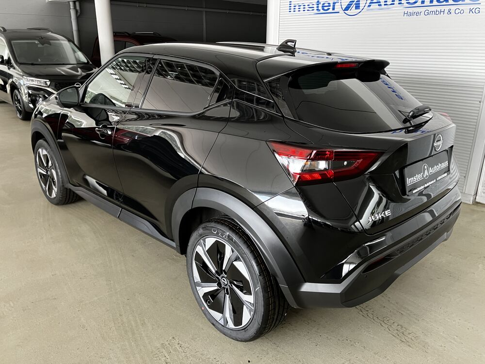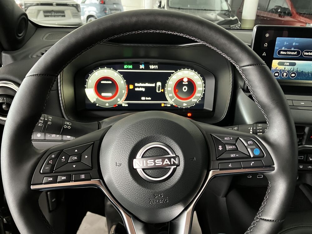 Dachspoiler, Außentemperaturanzeige, elektr. FH vorne und hinten, ZV mit Fernbedienung, Klimaautomatik, beheizte Vordersitze, zusätzlich abgedunkelte Scheiben hinten, ISOFIX, elektr. einstellbar und beheizbare Außenspiegel, Start-Stop System, Einparkhilfe vorne und hinten, elektr. Parkbremse, Tempomat, Verkehrszeichenerkennung, Fernlichtassistent, Fahrer- und Beifahrersitz höhenverstellbar, Haifischantenne, Coming Home Funktion, Notbremsassistent, e-Call Notrufsystem, doppelter Kofferraumboden, LED-Nebelscheinwerfer, Müdigkeitserkennung, Spurhalteassistent, Licht- und Regensensor, Alarmanlage, Totwinkelassistent, Querverkehrswarner, Spurwechselassistent aktiv, 360° Around View Monitor / Rundumsicht, Mittelarmlehne vorne, TFT 12,3" Kombiinstrument, Teilledersitze, Nissan Connect Navigationssystem, Infotainmentsystem, induktives Smartphone Ladesystem, Drive-Mode System (Eco/Normal/Sport), Dachhimmel in schwarz, beheiztes Lederlenkrad, Berganfahrassistent, Auto-Hold Assist, ESP, USB A und C Schnittstellen, geteilte Rücksitzbank 60:40, Lenkrad verstellbar, Bordcomputer, Servotronic, Voll-LED Scheinwerfer, 19" Sommerräder mit Alu-Felgen, etc.(Irrtümer vorbehaten)