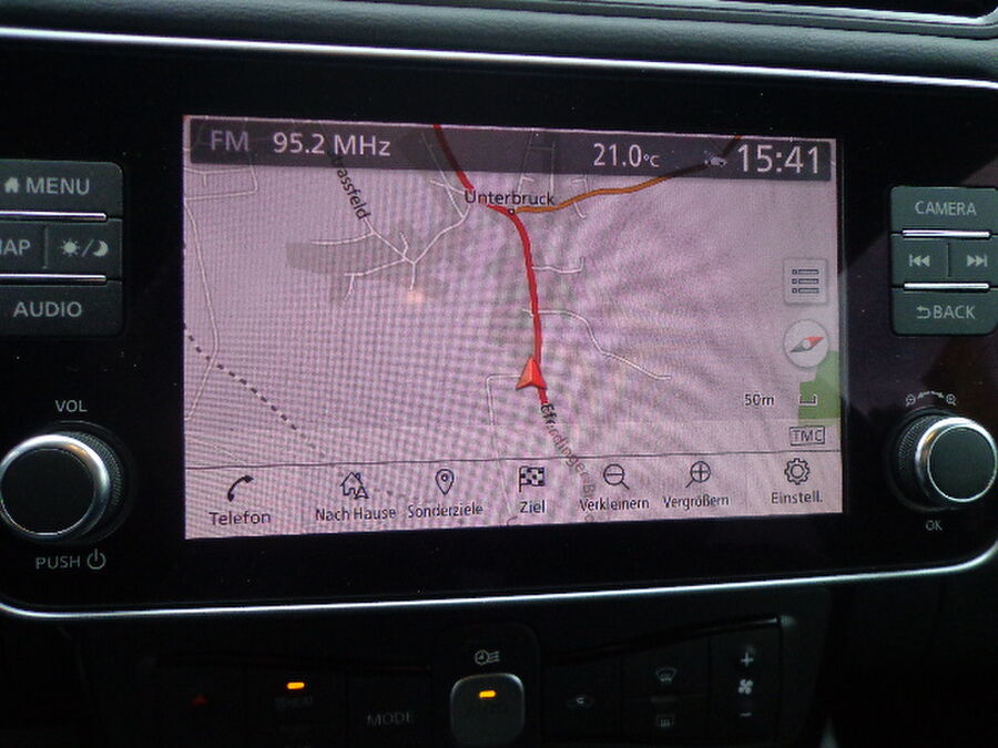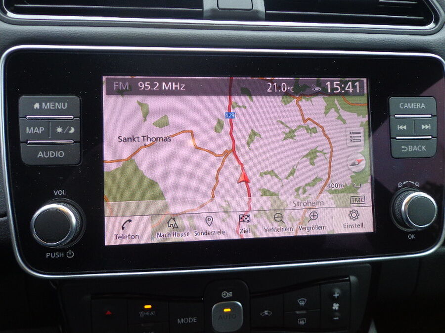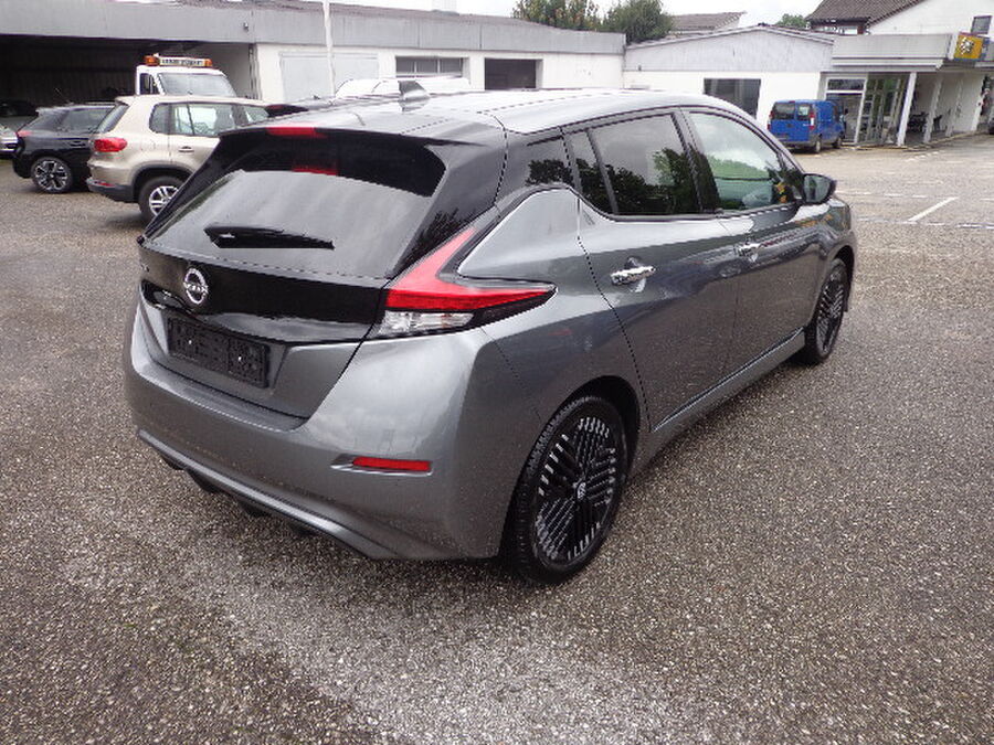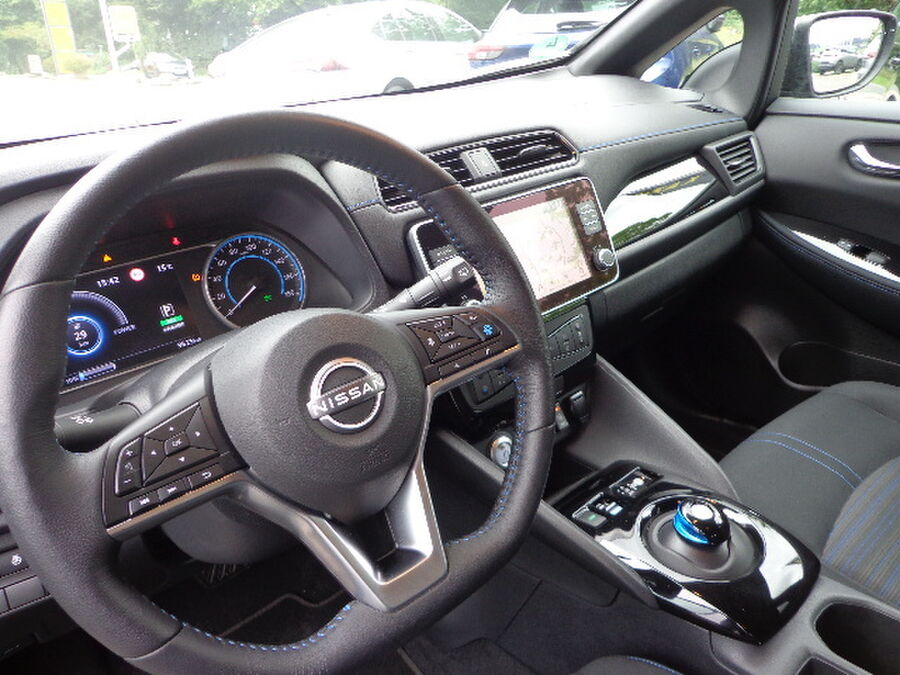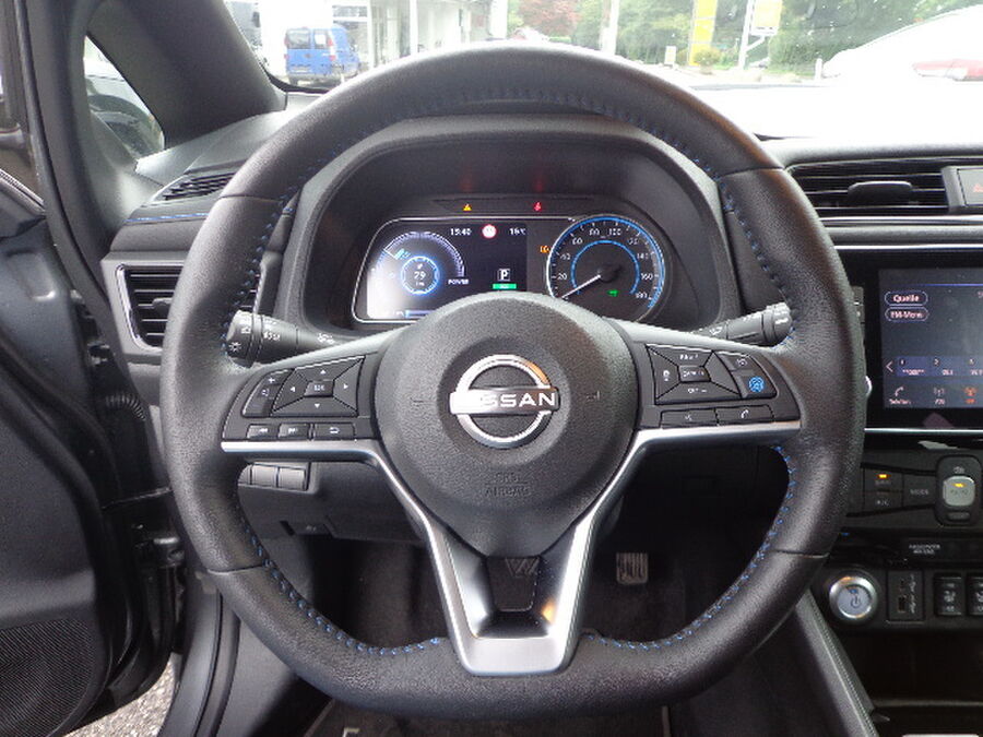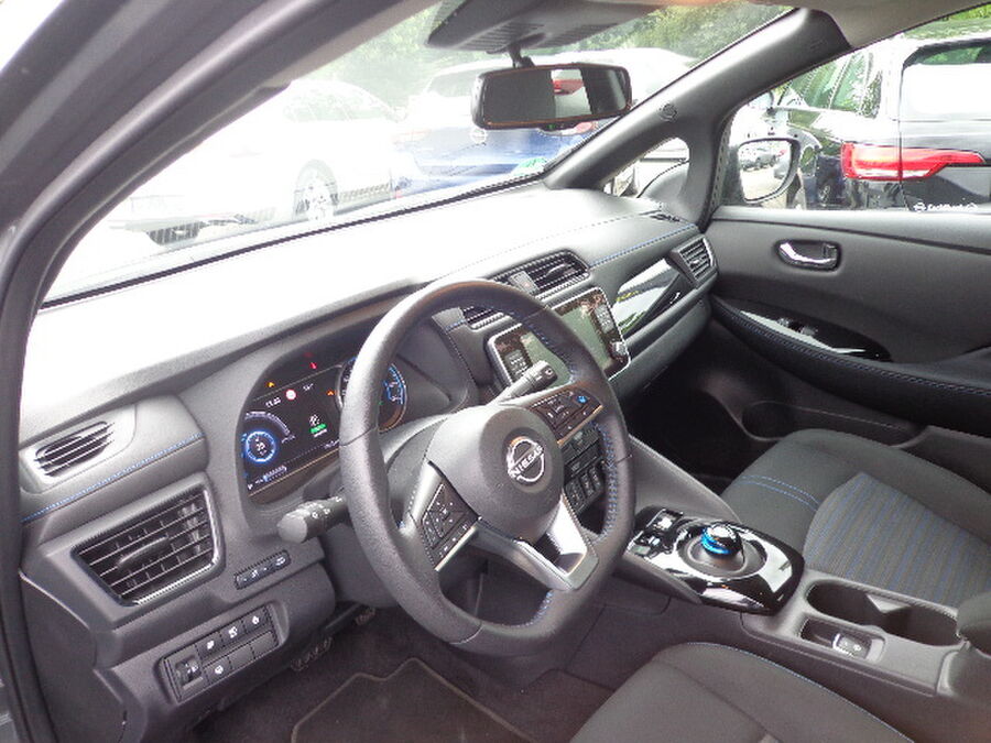 3. Bremsleuchte, Akustischer Umfeldschutz (Außensound), Around View Monitor (360° Umgebungsansicht), Fahrassistenz-System: Moving Object Detection (MOD, Fußgängererkennung und bewegliche Objekterkennung), Ausstattungs-Paket: Nissan Connect EV, 6 Lautsprecher, AUX-IN-Anschluss (AUX-IN), USB-Schnittstelle, Navigationssystem, Außenspiegel Wagenfarbe, Außentemperaturanzeige, B-Säulen schwarz, Dachantenne, Dachantenne im Haifischflossen-Design, Elektr. Bremskraftverteilung (EBD), Fahrassistenz-System: Fußgängererkennung, Frontkamera, Frontscheibe Verbundglas, Getränkehalter hinten, Getränkehalter in Mittelkonsole, Getränkehalter vorn, HV-Batterie 40 kWh, Innenraumfilter: Pollenfilter, Kofferraumabdeckung, Ladekabel mit Schukostecker (Mode 2), Ladekabel mit Typ 2-Stecker (Mode 3), Ladevorrichtung Wechselstrom (bis 6,6 kW), Audio-/Radio-Fernbedienung am Lenkrad, Lenksäule (Lenkrad) höhenverstellbar, Leuchtweitenregelung, Nebelschlussleuchte, Parkbremse elektrisch, Pedalerie elektr. einstellbar, Pro Pilot-Paket, Fahrassistenz-System: Stauassistent inkl. Stop&Go-Funktion, Schnellladevorrichtung, Sitz vorn links höhenverstellbar, Sitzbezug / Polsterung: Stoff, Steckdose (12V-Anschluß) in Mittelkonsole, Türgriffe außen verchromt, Wärmepumpe zur Reichweitenoptimierung, Leuchtweitenregelung, Winter-Paket, Außenspiegel heizbarFahrzeugbeschreibung