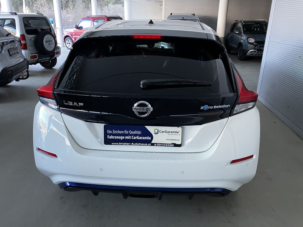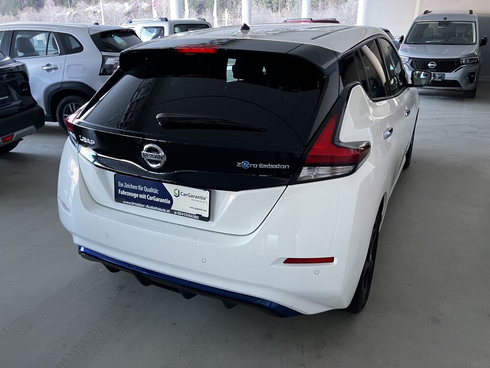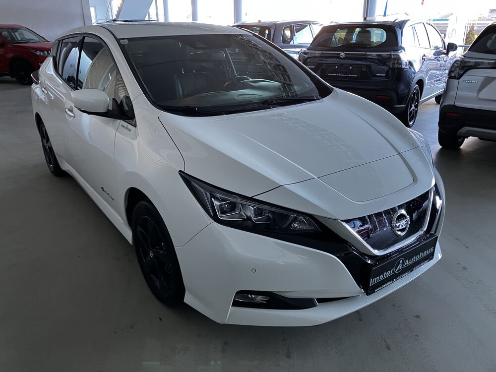 elektr. FH vorne und hinten, Außentemperaturanzeige, Innenspeiegel automatisch abblendbar, elektr. einstellbar, beheizbare und einklappbare Außenspiegel, geteilte Rücksitzbank 60:40 umklappbar, Servotronic, Klimaautomatik, Berganfahrassistent, Nebelscheinwerfer, BOSE-Soundsystem, Notbremsassistent, ISOFIX, Licht- und Regensensor, ZV mit Fernbedienung, Sitzheizung vorne und hinten + Lenkradheizung, 17" Sommerräder mit Alu-Felgen, zusätzliche Winterräder auf 16" Alufelgen, LED-Rückleuchten, I-Key Schlüsselsystem, Start-Stop Knopf, Ambiente Beleuchtung Innenraum, Verkehrszeichenerkennung, Fernlichtassistent, LED-Tagfahrlicht, 360° Around View Monitor, Totwinkelassistent, Fahrersitz höhenverstellbar, Nissan-Connect EV mit 7" Farbdisplay, Apple-Car Play und Android Auto, Bewegungserkennung, Müdigkeitswarner, e-Pedal One Pedal Driving, Spurhalteassistent, Spurwechselassistent, Querverkehrswarner, Coming Home Funktion, Wärmepumpe, ACC Tempomat, elektr. Parkbremse, LED-Scheinwerfer, etc.(Irrtümer vorbehalten)