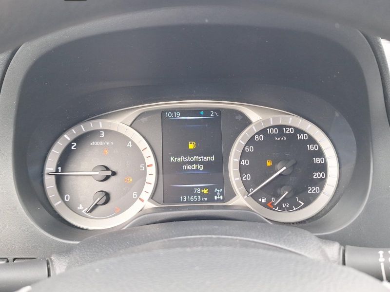 Klimaanlage, Airbag Beifahrerseite abschaltbar, Audiobedienung am Lenkrad, Audiosystem: Radio mit CD- und MP3-Player, Außenspiegel elektr. verstellbar, Außentemperaturanzeige, Fahrassistenz-System: Geschwindigkeits-Warnanlage akustisch (Speed-Limiter), Fahrer-Informations-System (FIS) mit Farbdisplay, Fensterheber elektrisch vorn, Freisprechanlage Bluetooth, Geschwindigkeits-Regelanlage (Tempomat), Isofix-Aufnahmen für Kindersitz, Mittelarmlehne vorn, Radioempfang digital (DAB), Sitz vorn links höhenverstellbar, Start/Stop-Anlage, USB-Schnittstelle, Airbag Fahrer-/Beifahrerseite, Anti-Blockier-System (ABS), Antriebsart: Allradantrieb, Automatische Fahrlichtschaltung, Bremsassistent (Nissan Brake-Assist), Differentialsperre mit begrenztem Schlupf, Elektron. Stabilitäts-Programm (ESP), Fahrassistenz-System: Berganfahr-Assistent, Kopf-Airbag-System, Tagfahrlicht, Reserverad in Fahrbereifung, 4 Lautsprecher, Außenspiegel heizbar, Außenspiegel mit Chromblende, Coming-Home-Lichtfunktion (FriFahrzeugbeschreibung