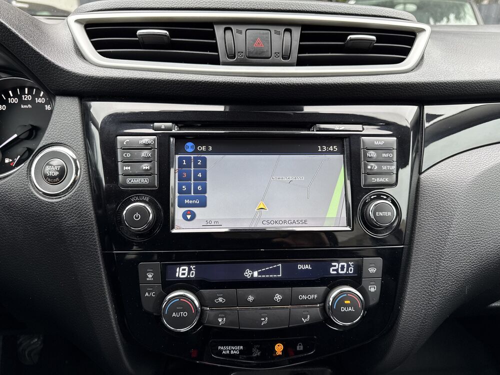 3. Bremsleuchte, Audiobedienung am Lenkrad, Ausstattungs-Paket: Nissan Connect mit Around View Monitor, 6 Lautsprecher, AUX-IN-Anschluss (AUX-IN), USB-Schnittstelle, Service-System: Google Services, Kamerasystem Around View, Außenspiegel Wagenfarbe, Außentemperaturanzeige, Elektr. Bremskraftverteilung (EBD), Frontkamera, Fahrer-Informations-System (FIS) mit Farbdisplay, Fernentriegelung Tankklappe, Frontscheibe Verbundglas, Gepäckraumabdeckung / Rollo, Getränkehalter hinten, Getränkehalter in Mittelkonsole, Handschuhfach beleuchtet, Heckscheibe heizbar, Innenraumfilter: Pollenfilter, Komfortsitz vorn links, Komfortsitz vorn rechts, Kopfstützen vorn und hinten verstellbar, Lendenwirbelstütze Sitz vorn links, Lenksäule (Lenkrad) höhen-/längsverstellbar, Leseleuchte vorn, Mittelarmlehne hinten, Nebelschlussleuchte, Parkbremse elektrisch, Radstand 2646 mm, Reifen-Reparaturset, Schadstoffarm nach Abgasnorm Euro 6, Schalt-/Wählhebelgriff Leder, Schaltpunktanzeige, Scheibenwischer mit Intervallschaltung, Adaptive Front-Lighting-System (AFS), Sitz vorn links höhenverstellbar, Sitz vorn rechts höhenverstellbar, Sonnenblenden mit Spiegel (beleuchtet), Steckdose (12V-Anschluß) in Mittelkonsole, Türgriffe innen verchromtFahrzeugbeschreibung