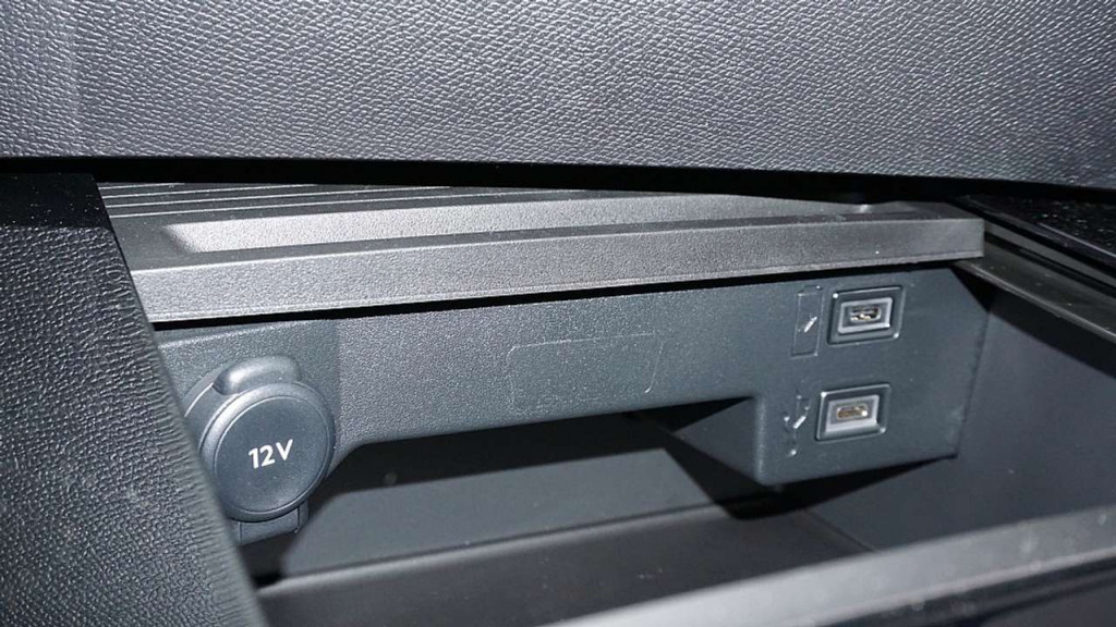 • Mittelarmlehne, vorne mit USB-Anschluss und 2 USB-Ladegeräten, Getränkehalter vorn und