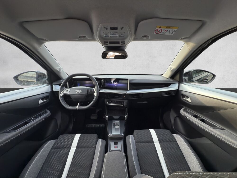 6 Lautsprecher, USB-Schnittstelle vorn (2-fach), USB-Schnittstelle hinten (2-fach), Steckdose (12V-Anschluß) im Fond (Mittelkonsole), Außenspiegel schwarz hochglänzend, B-Säulen schwarz Hochglanz (außen), Elektr. Bremskraftverteilung (EBD), Ergonomiesitz vorn links/rechts, Lendenwirbelstütze Sitz vorn links, Lendenwirbelstütze Sitz vorn rechts, Frontkamera, Feststellbremse elektrisch, Gepäck-/Laderaumboden doppelt, Gepäcknetz / Tasche an Vordersitzlehne, Getränkehalter, Heckscheibe heizbar, Heckscheibenwischer mit Intervallschaltung, Induktionsladeschale für Smartphone (Wireless Charging), Kindersicherung, Kopfstützen hinten, Kopfstützen vorn verstellbar, Kühlergrill, Opel Vizor, Rahmen in Hochglanz-Schwarz, Ladekabel mit Typ 2-Stecker (Mode 3), Ladevorrichtung On-Board-Lader (7,4 kW), Audiobedienung am Lenkrad, Lenksäule (Lenkrad) höhenverstellbar, Leseleuchten vorn und hinten, vorn LED, Mobile Online Dienste MirrorLink und AppinCar (Mirror Screen), Opel Connect, Parkpilotsystem vorn und hinten, Radstand 2670 mm, Reifen-Reparaturkit, Schalt-/Wählhebel (e-toggle), Scheibenwischer mit Intervallschaltung, Sitz vorn links höhenverstellbar, Sitzbezug / Polsterung: Stoff, Sonnenblende / Sonnenblenden mit Spiegel, Steckdose (12V-Anschluß) in Mittelkonsole, Türgriffe außen schwarz, Türgriffe innen verchromt, Unterfahrschutz-Optik, vorn und hinten (Silber), Vorrüstung Sicherheitsnetz hinter Vordersitze, Wärmeschutzverglasung hinten abgedunkelt (Solar-Protect), Seitenscheiben hinten (dunkel getönt), Dach Wagenfarbe, Tech-Paket 1, Winter-Paket