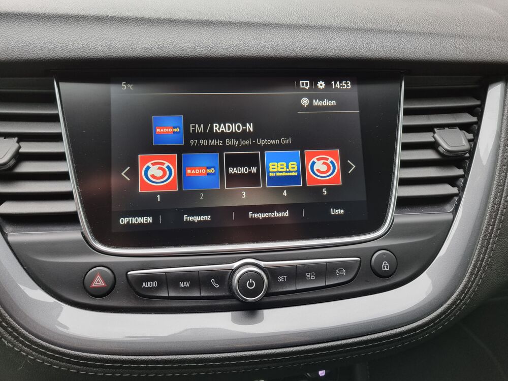3. Bremsleuchte, Ausstiegsleuchten, Elektr. Bremskraftverteilung (EBD), Elektron. Stabilitäts-Programm Plus (ESP), Elektron. Stabilitäts-Programm (ESP), Frontkamera, Fahrzeugschlüssel (2) beide klappbar, Fensterzierleisten verchromt, Feststellbremse elektrisch, Frontscheibe geräuschdämmend, Gepäck-/Laderaumleuchte, Gepäckabdeckung / Rollo ausziehbar, Gepäcknetz / Tasche an Vordersitzlehne, Getränkehalter Einlage, Heckscheibe heizbar, Heckscheibenwischer, Innenraumfilter: Pollenfilter, Kindersicherung, Kopfstützen hinten (3-fach), Kurvenbremskontrolle, Lenksäule (Lenkrad) verstellbar, Leseleuchten im Fond, Leseleuchten vorn (2), Mittelarmlehne hinten, Durchladeeinrichtung, Radstand 2675 mm, Schadstoffarm nach Abgasnorm Euro 6d-TEMP, Sitz vorn links höhenverstellbar, Sitz vorn rechts höhenverstellbar, Steckdose (12V-Anschluß) im Fond (Mittelkonsole), Steckdose (12V-Anschluß) im Koffer-/Laderaum, Steckdose (12V-Anschluß) in Mittelkonsole, Technologie-Paket Park & Go, Ausstiegsleuchten, Parkpilotsystem vorn und hinten, Türgriffe außen Wagenfarbe, Unterfahrschutz-Optik, vorn und hinten (Silber), Warnanlage für Sicherheitsgurt, Beifahrerseite, Warnanlage für Sicherheitsgurt, Fahrerseite, Warnanlage für Sicherheitsgurte hinten, Dachantenne im Haifischflossen-Design, USB-Schnittstelle, Leuchtweitenregelung automatisch, Abbiegelicht, Dach Diamant-Schwarz, Außenspiegel schwarz lackiert, Parkpilotsystem vorn und hinten, Fußmatten Velours, Licht- und Sicht-Paket, Einschaltautomatik für Fahrlicht, Opel Connect, Raucher-Paket, Zigarettenanzünder, Reserverad als Notrad, Sitzbezug / Polsterung: Stoff Oxford / Ledernachbildung Morrocana / Harlekin, Schwarz, Ergonomiesitz vorn links, Sitz vorn links höhenverstellbar, Sitz vorn rechts höhenverstellbar, Sitzneigungsverstellung vorn links, Sitz vorn links mit ausziehbarer Oberschenkelauflage, Sitz vorn rechts mit ausziehbarer Oberschenkelauflage, Winter-Paket, Audiobedienung am Lenkrad, Wärmeschutzverglasung hinten abgedunkelt (Solar-Protect)Weitere Angebote: