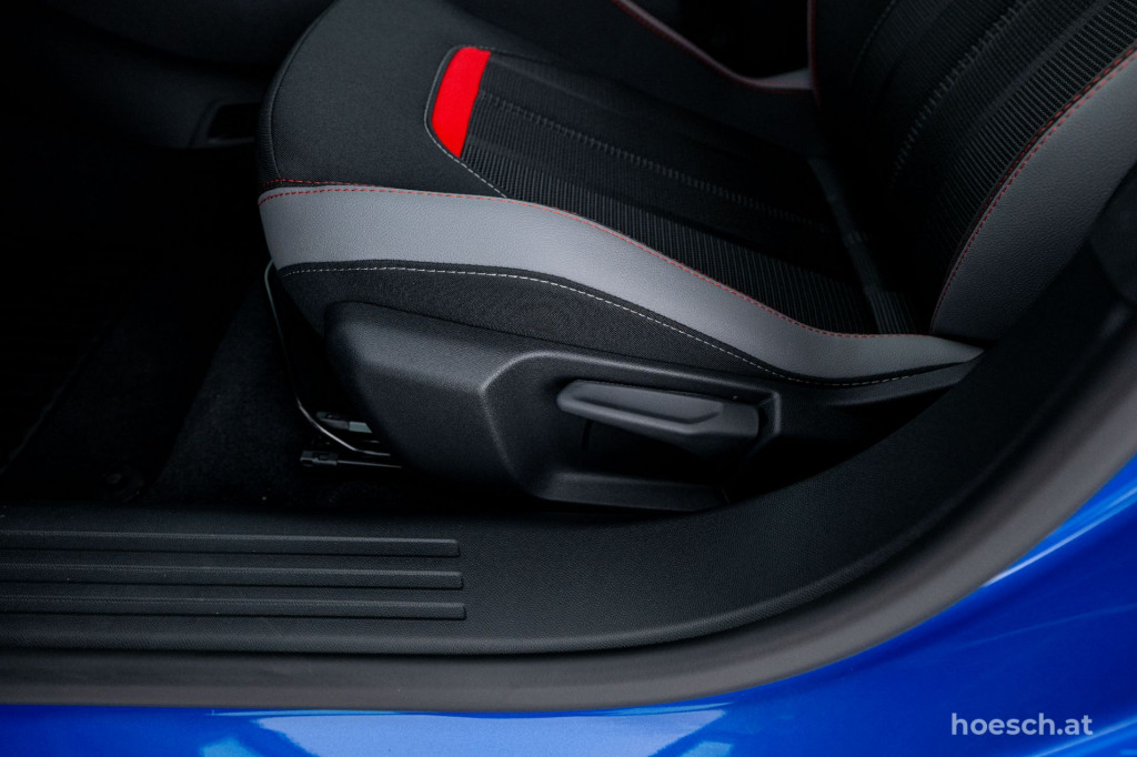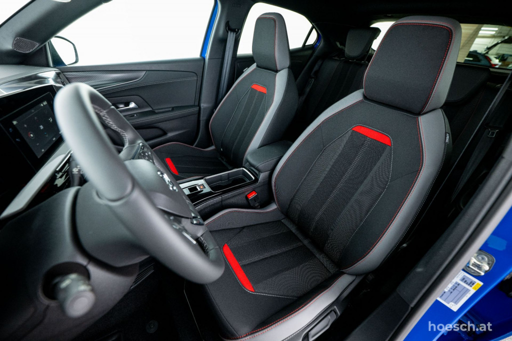 • Polsterung in Leder/Stoff Kombination schwarz mit roten Akzenten